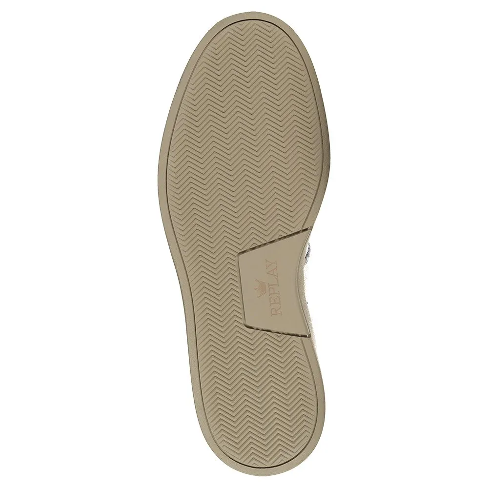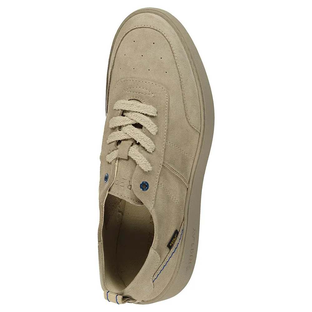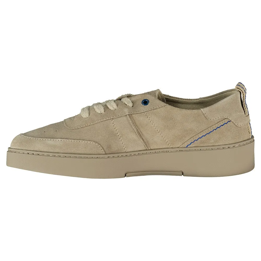 Мужские кроссовки на шнурках бежевого цвета из кожи и замши.