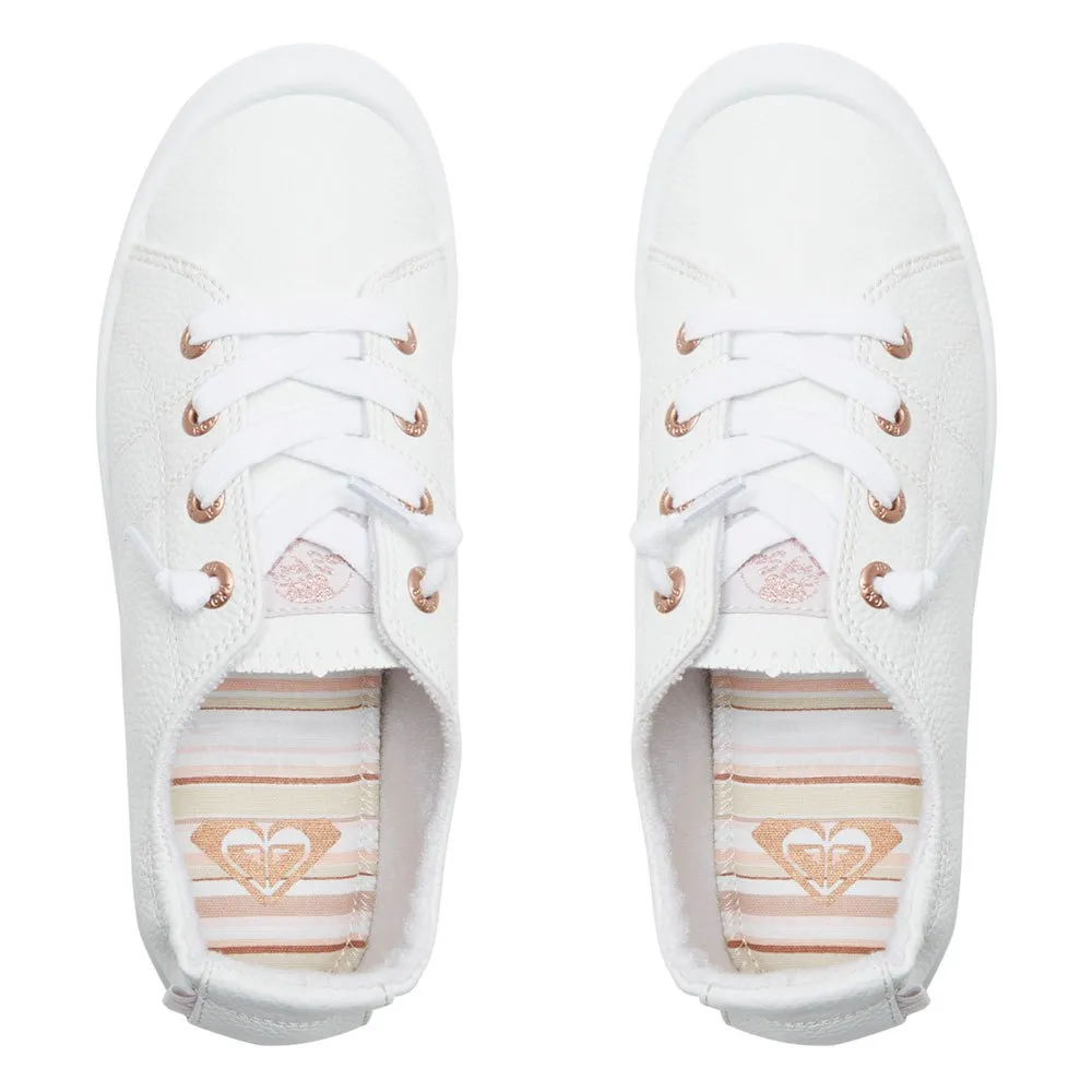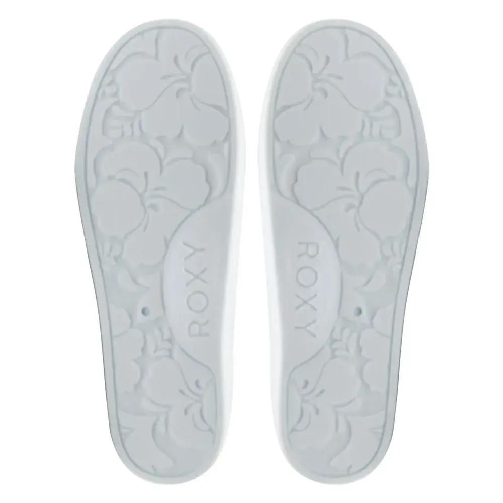 Подошва: Гибкая, слегка увеличенной высоты, из переработанного термопластичного каучука с формованным сводом и историческим принтом Roxy.