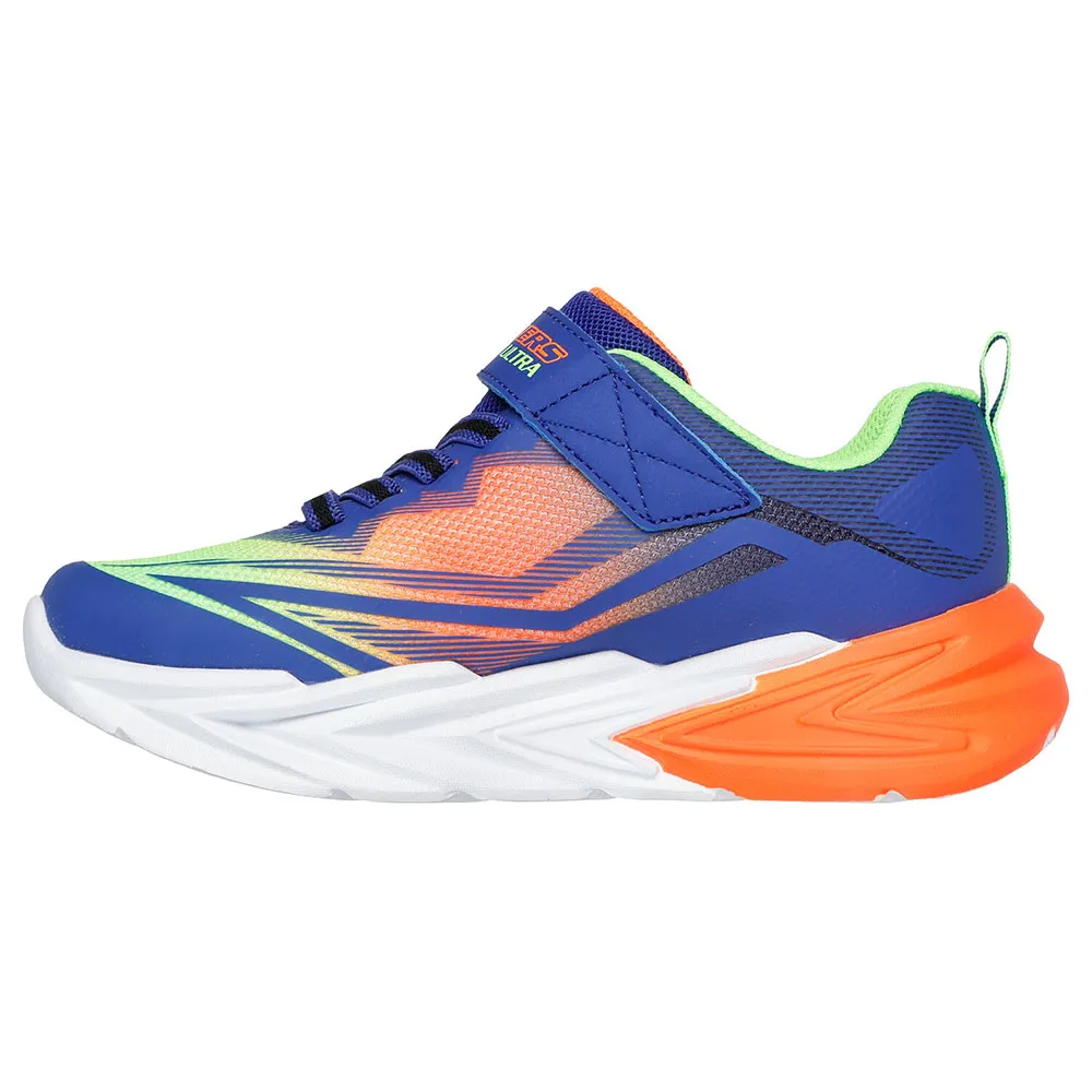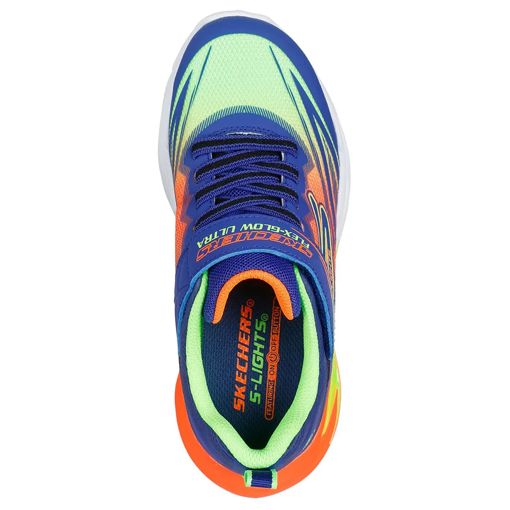 Оживите свой день яркими кроссовками Skechers S-Lights: Flex-Glow Ultra. Эти яркие кроссовки отличаются сетчатым верхом с эффектом омбре и синтетическими накладками, фиксированными эластичными шнурками и адаптивной застежкой, а также технологичной светящейся промежуточной подошвой.