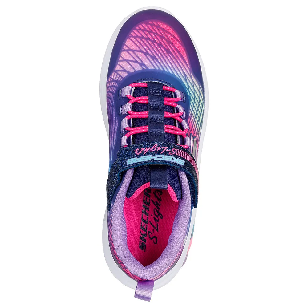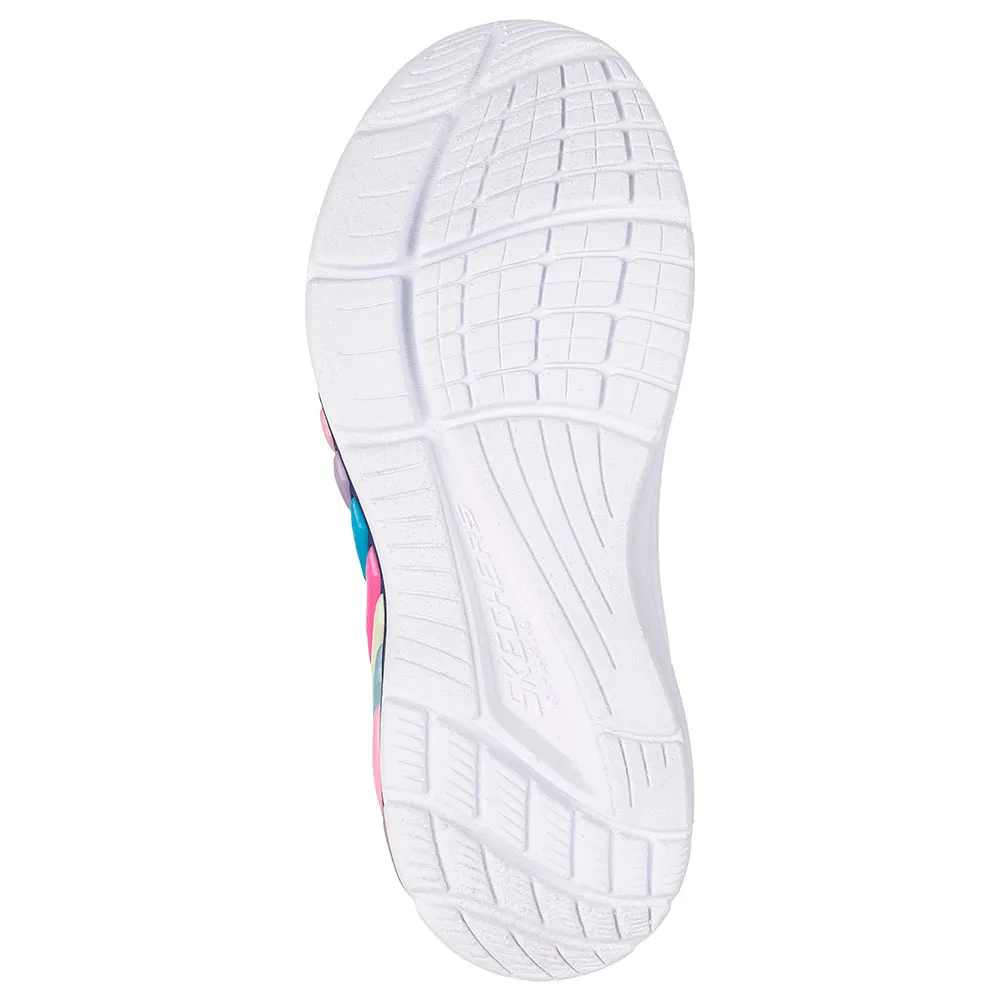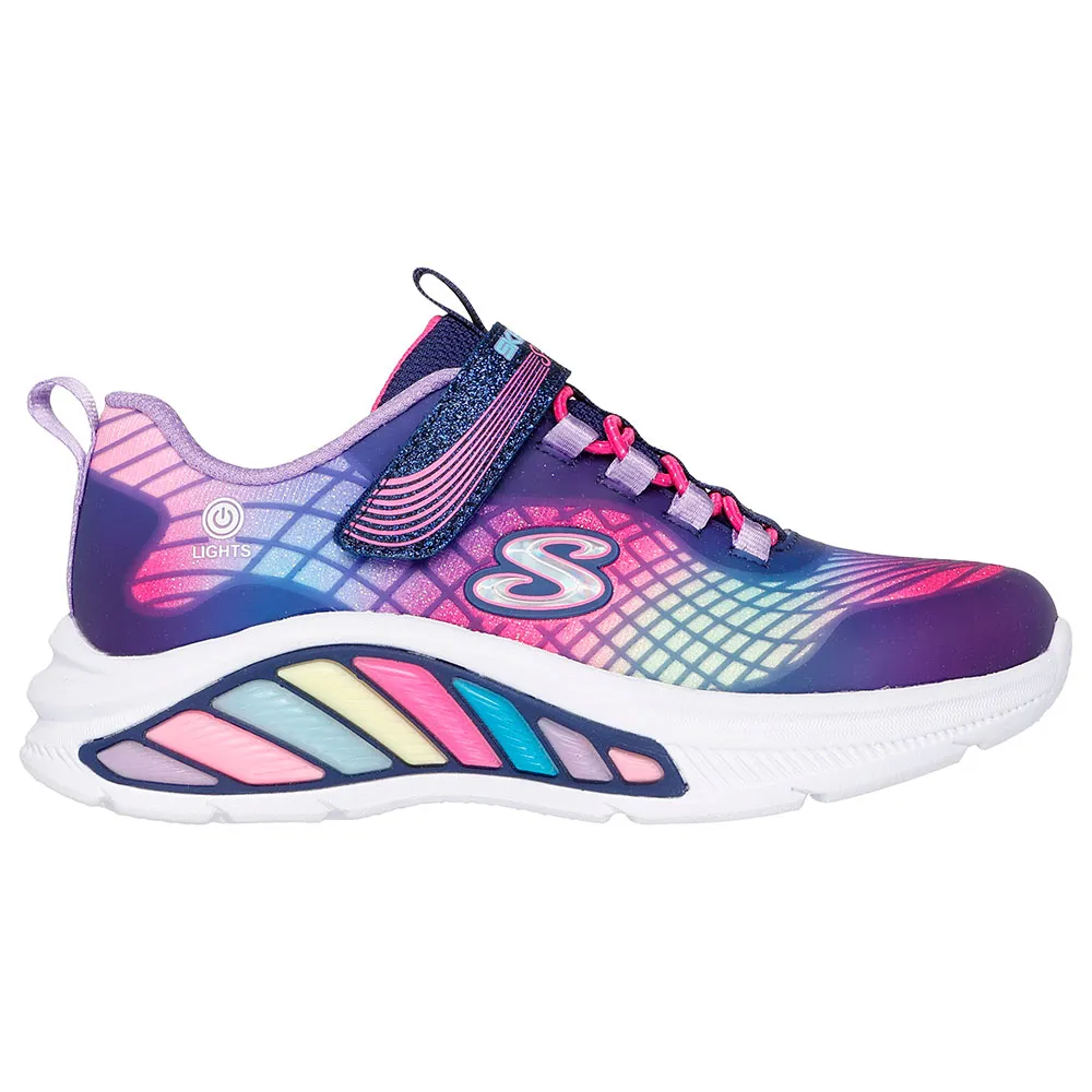 Игривые огни и красочное веселье сочетаются в кроссовках Skechers Rainbow Cruisers - Rainbow Reflectin. Эти светящиеся кроссовки имеют верх из сетки с блестками омбре и синтетического материала с эластичными шнурками и адаптивной застежкой Skechers.