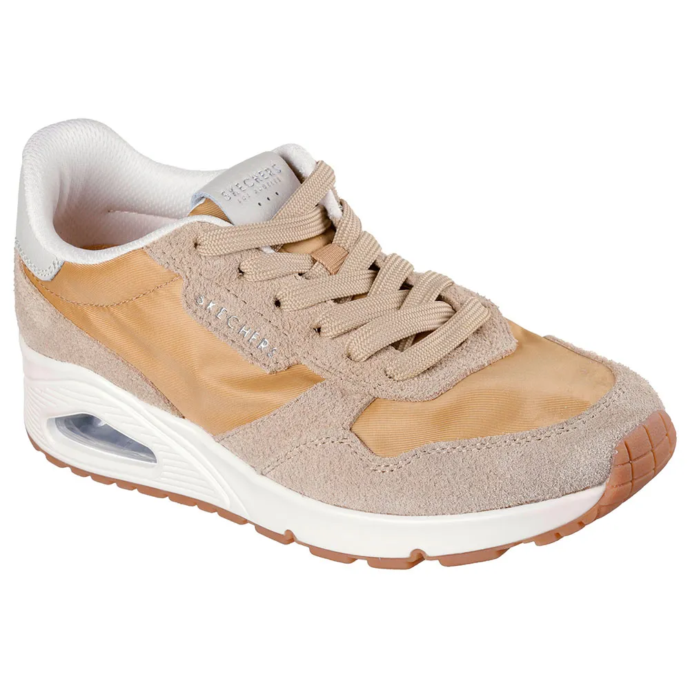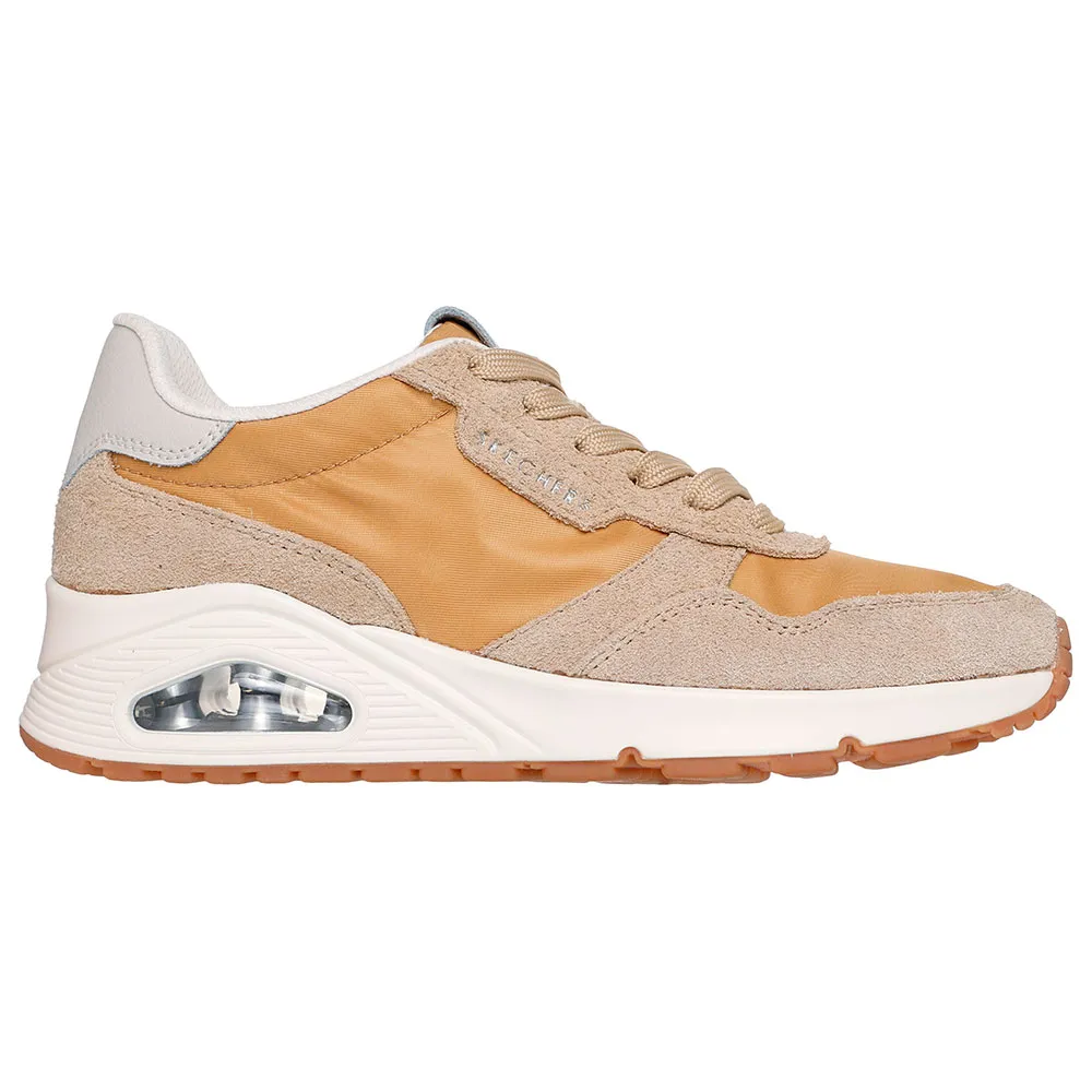 Классический комфорт с воздушной подушкой получает новое дыхание в модели Skechers Street UNO - Vintage Dayz. Этот ретро-стиль характеризуется верхом из замши и сетки со шнуровкой спереди, стелькой из пены с эффектом памяти с воздушным охлаждением и видимой промежуточной подошвой с воздушной амортизацией Skech-Air.