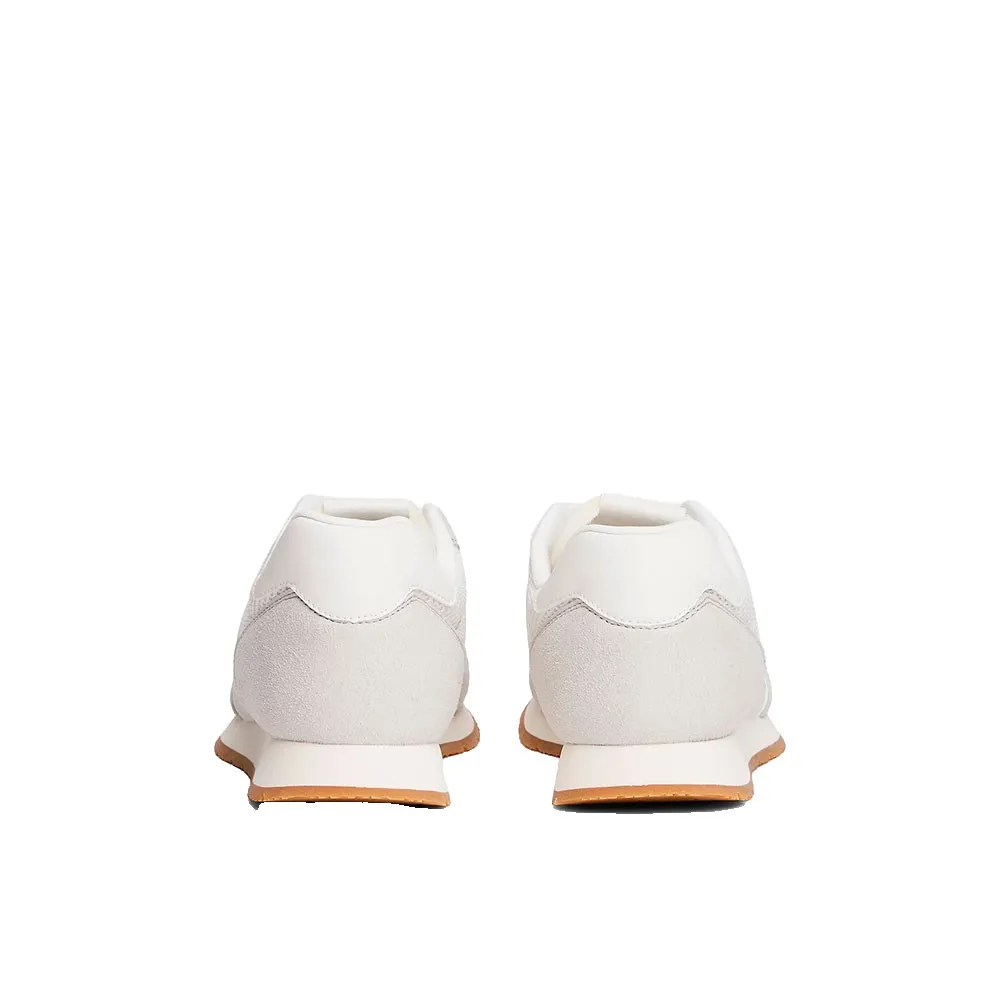 Эти мужские кроссовки цвета экрю сочетают в себе замшу и сетчатую фактуру с резиновой подошвой и классическим фирменным флагом, создавая повседневный образ в винтажном стиле.