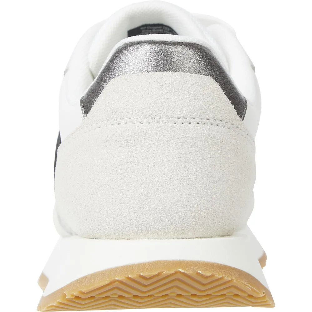 Женские кроссовки для бега из белой замши с металлическими деталями.