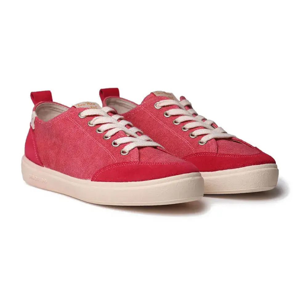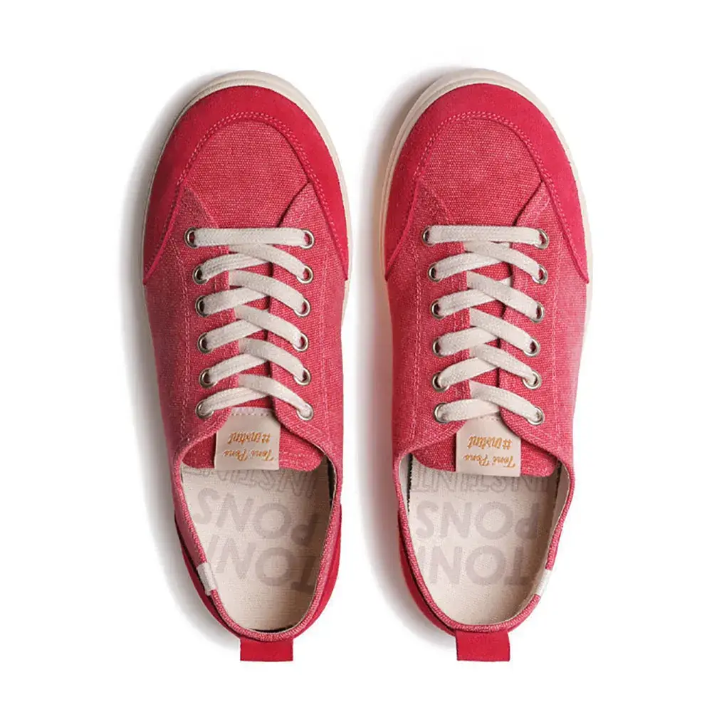 Эти женские кроссовки на шнуровке изготовлены из хлопчатобумажной ткани и оснащены резиновой подошвой.