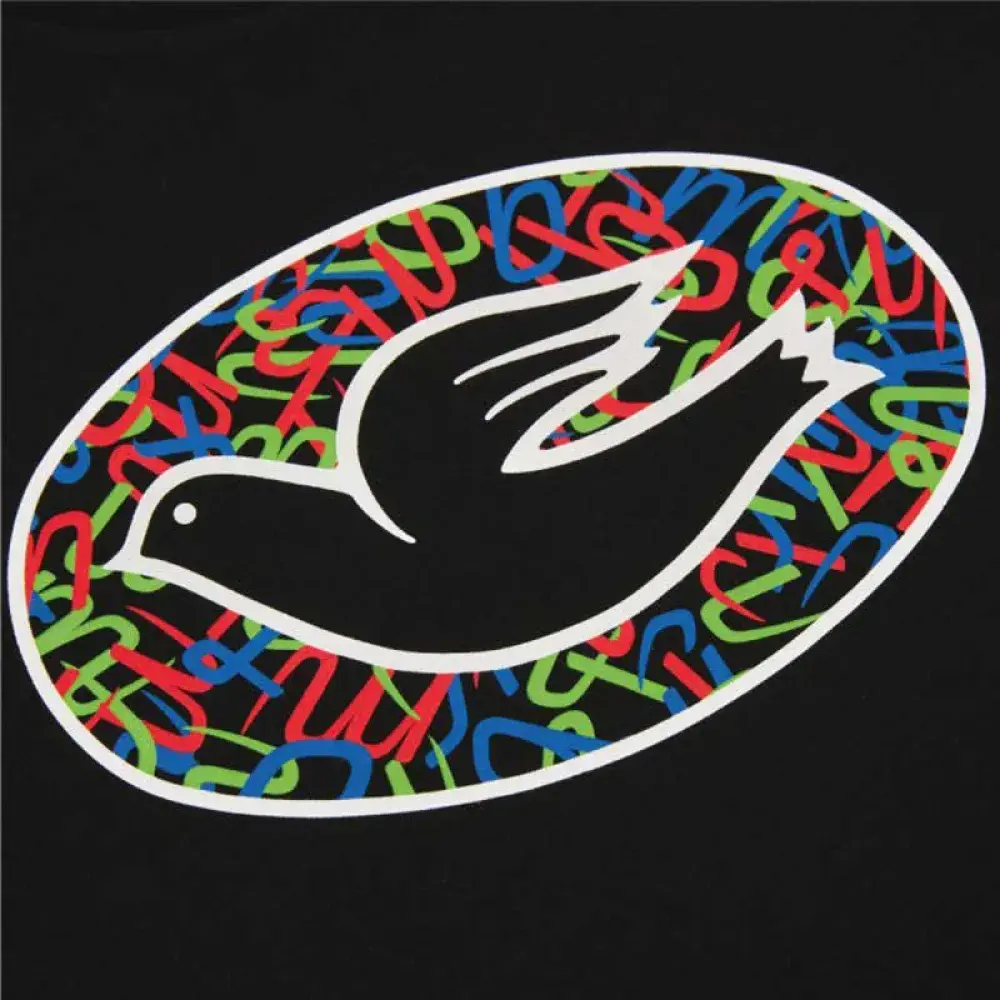 Оригинальный голубь Колумба воссоздан на фоне тубографии. Небольшая деталь завершает рукав.