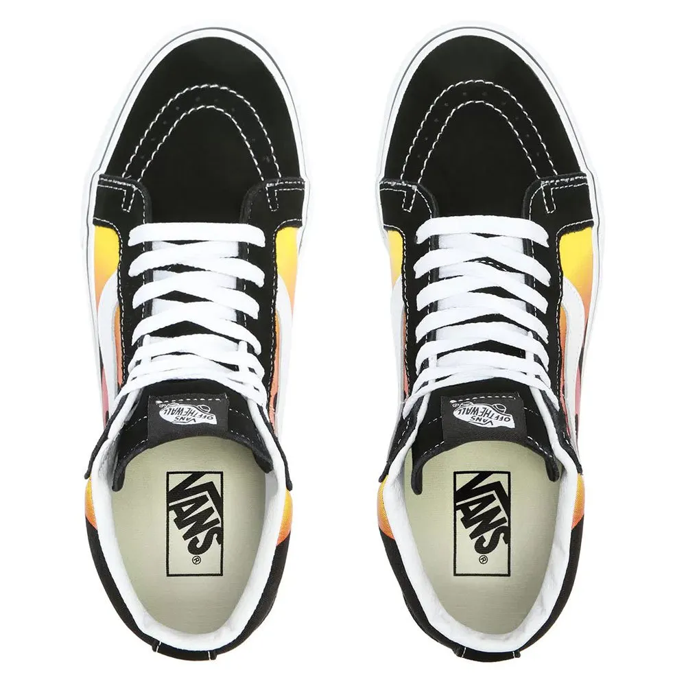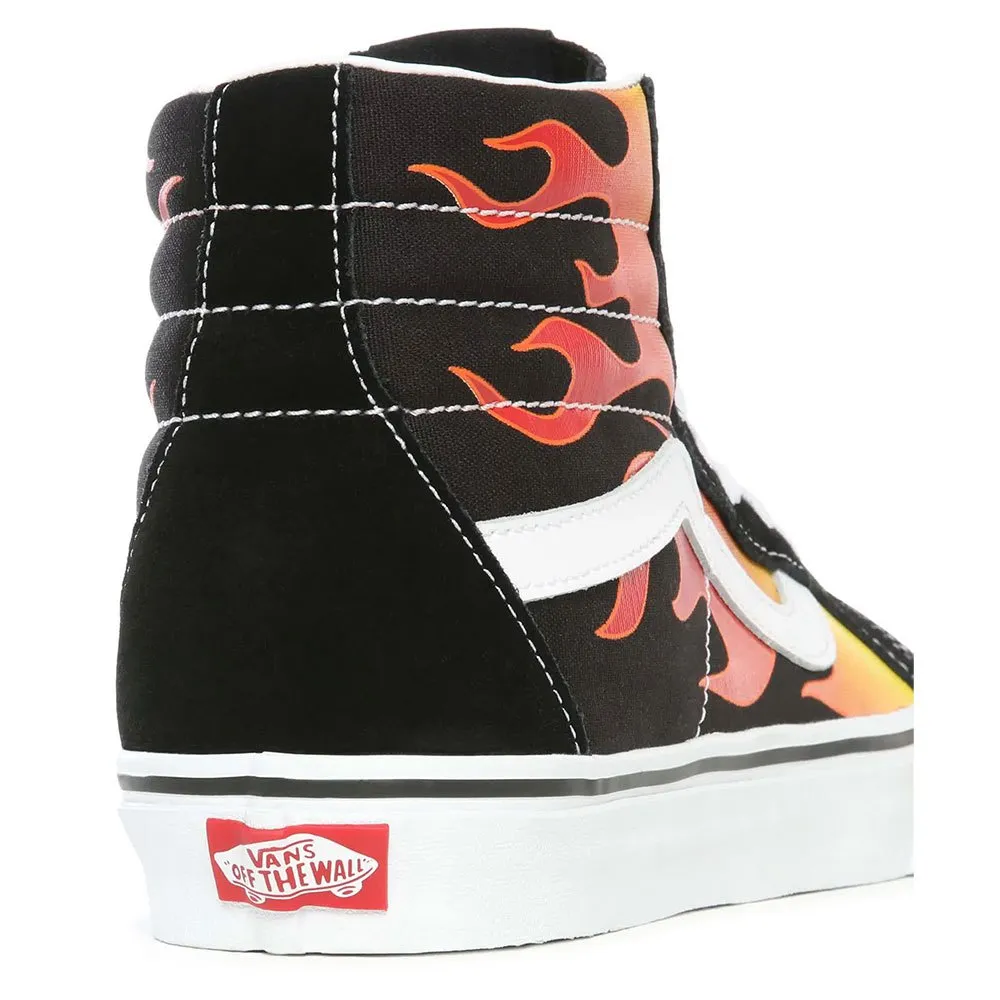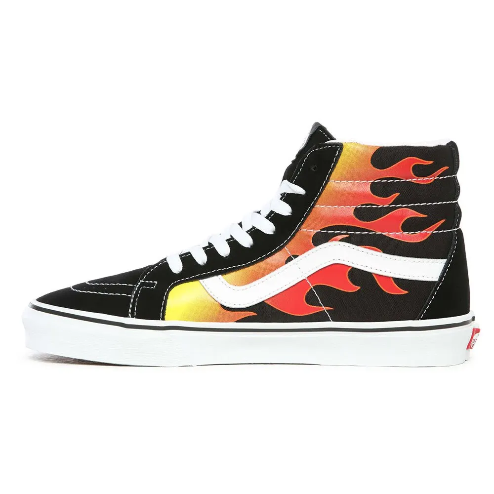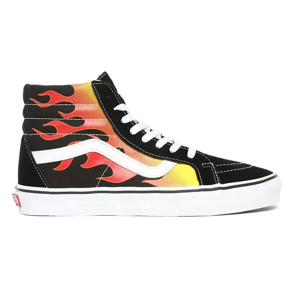 Переиздание Flame Sk8-Hi — легендарные высокие кеды Vans, переизданные с винтажным оттенком. Верх выполнен из принтованной парусины и замши, усиленные носки для защиты от многократного износа, мягкие бортики для поддержки и гибкости, а также фирменная резиновая вафельная подошва.
