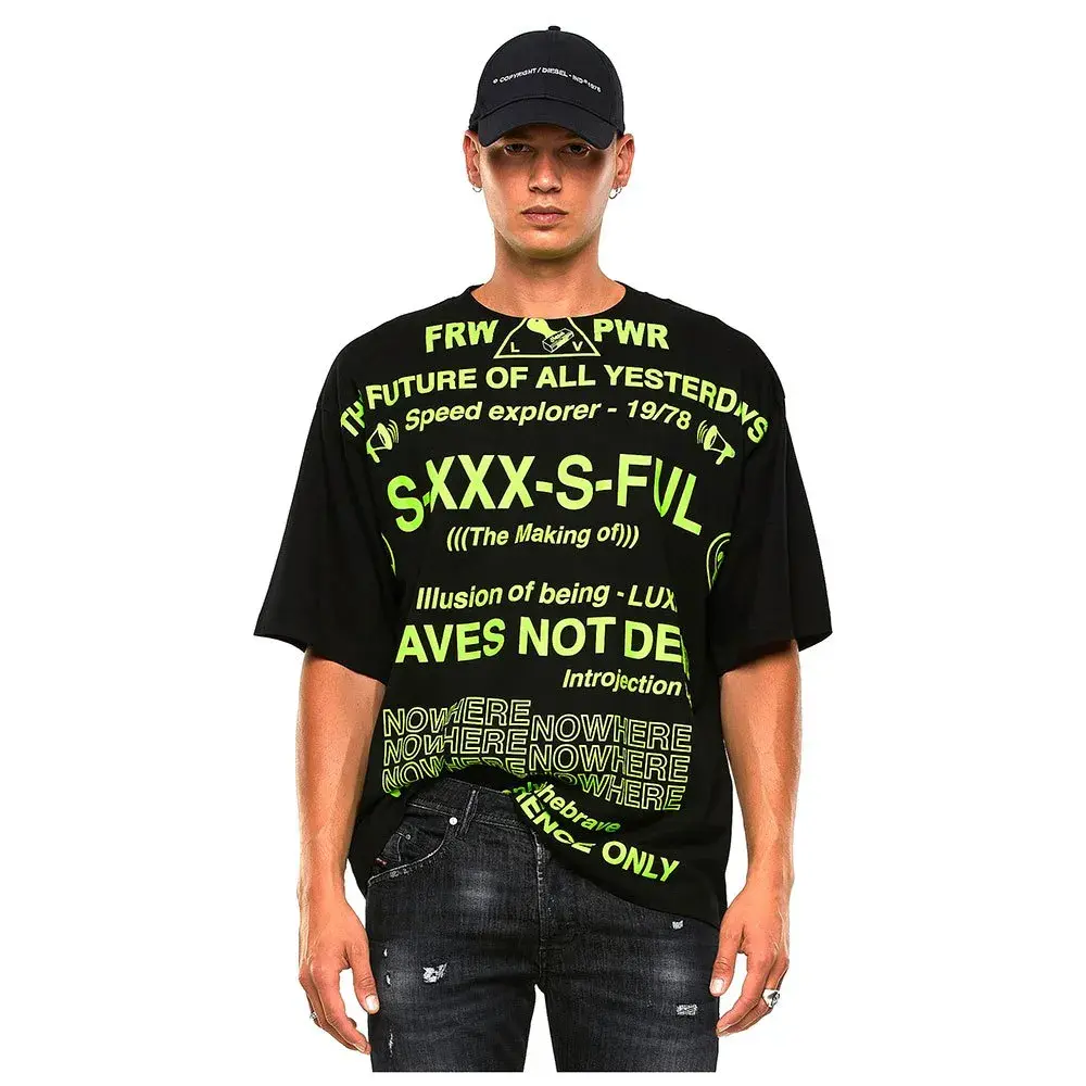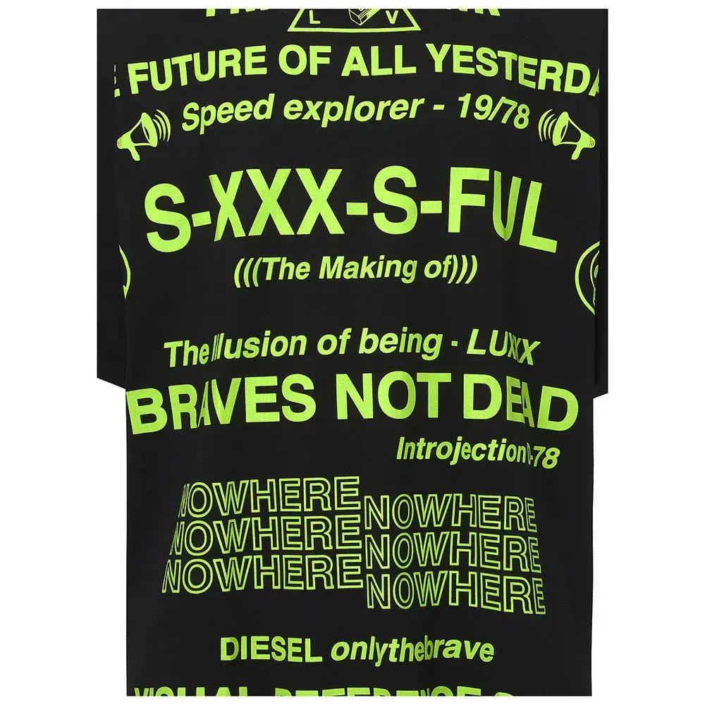 Спереди напечатан контрастный манифест рейвера Diesel, прорезиненные буквы.