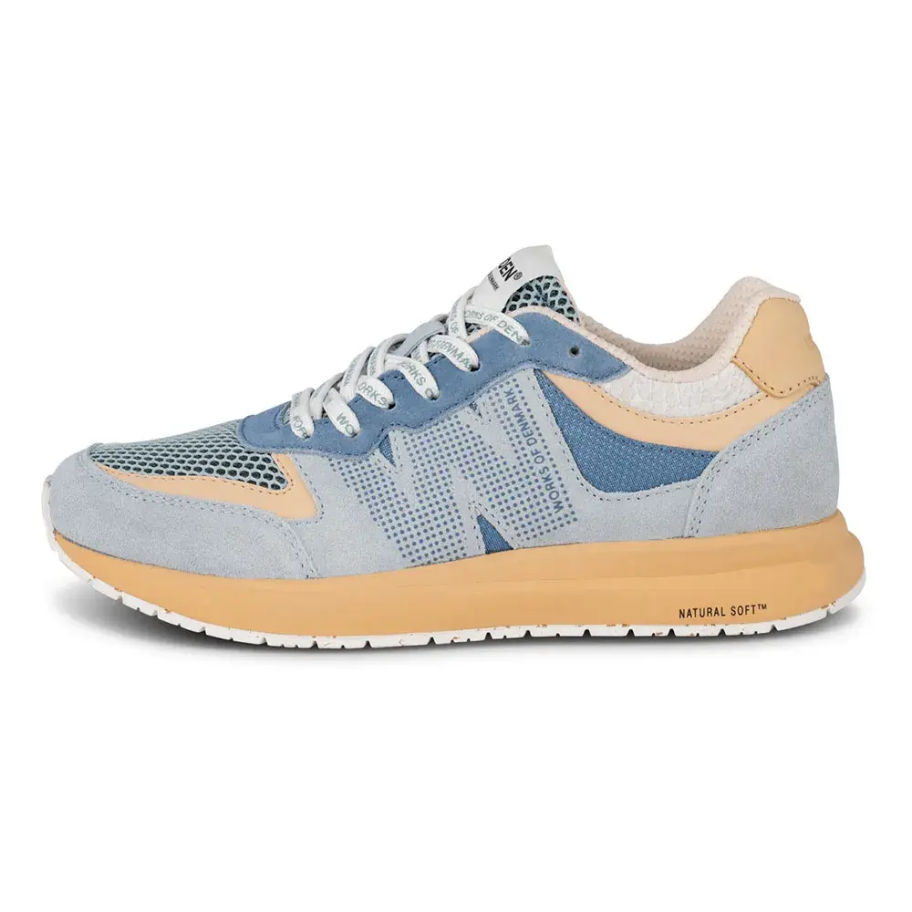 -Сертифицированная замша LWG - Переработанная сетка - Переработанная рыбья кожа с сертификацией ASC - Формованная легкая промежуточная подошва из ЭВА - Резиновая подошва с 10% переработанной резины.