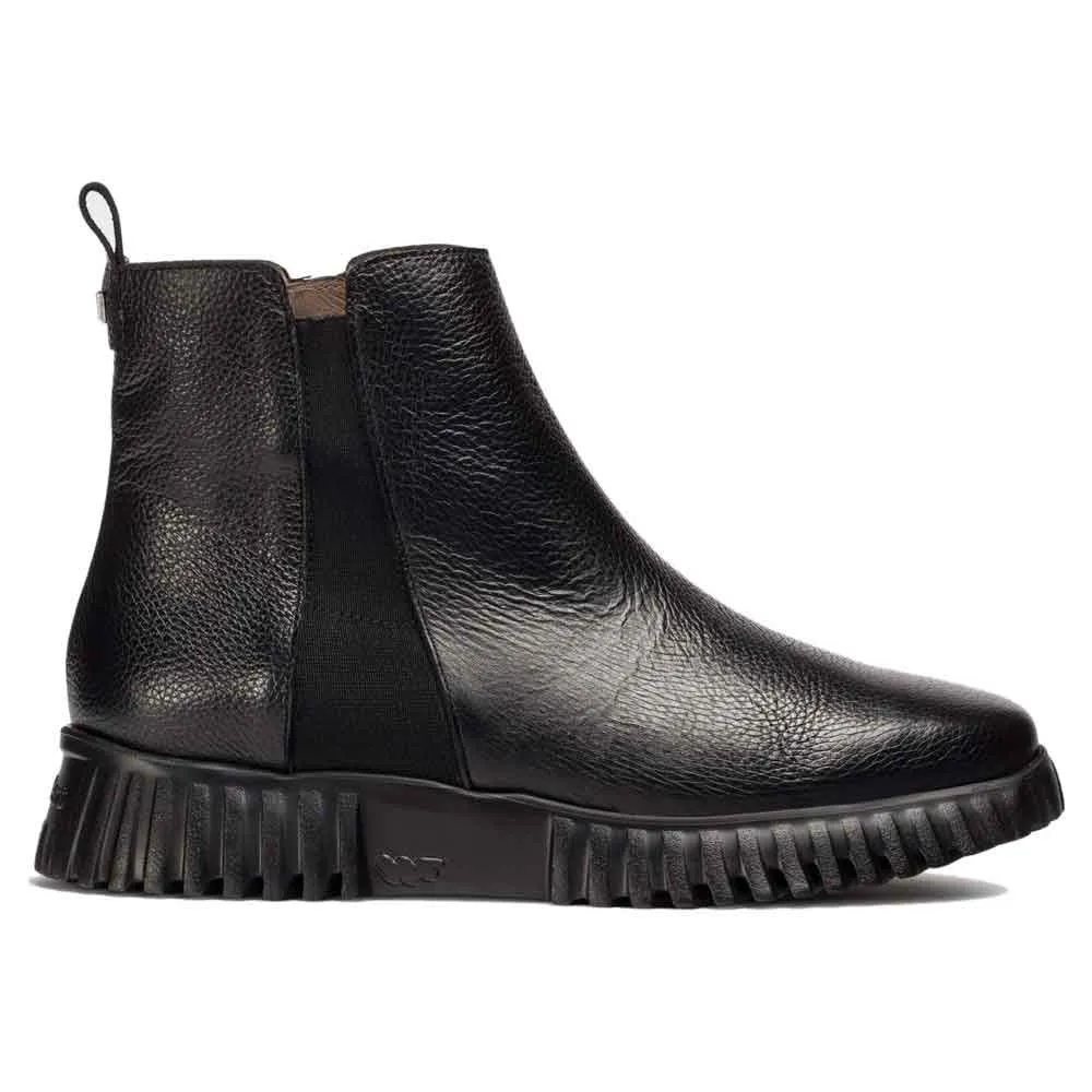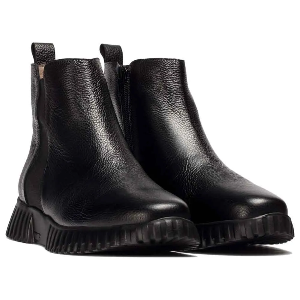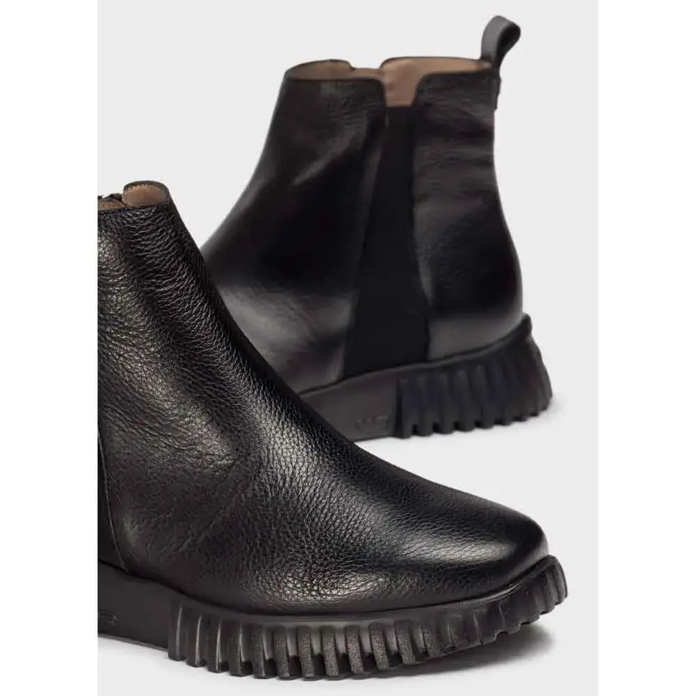Черные ботильоны из текстурированной кожи с простым и универсальным дизайном.