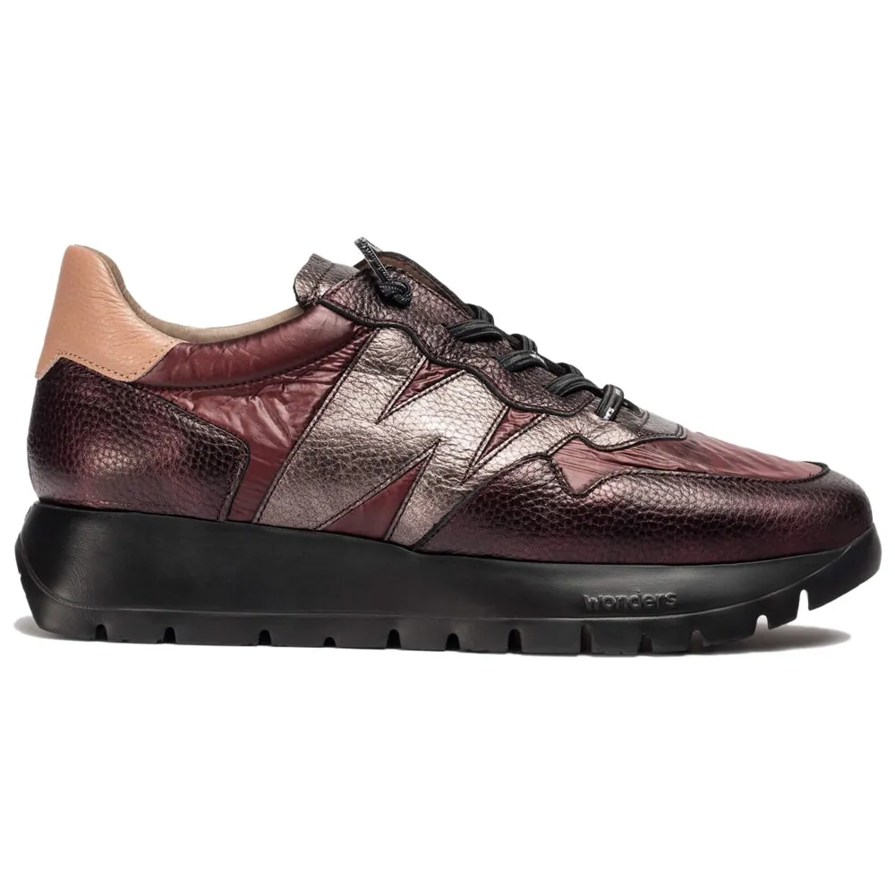 Кроссовки в медных и свинцовых тонах, изготовленные из комбинированных материалов.
