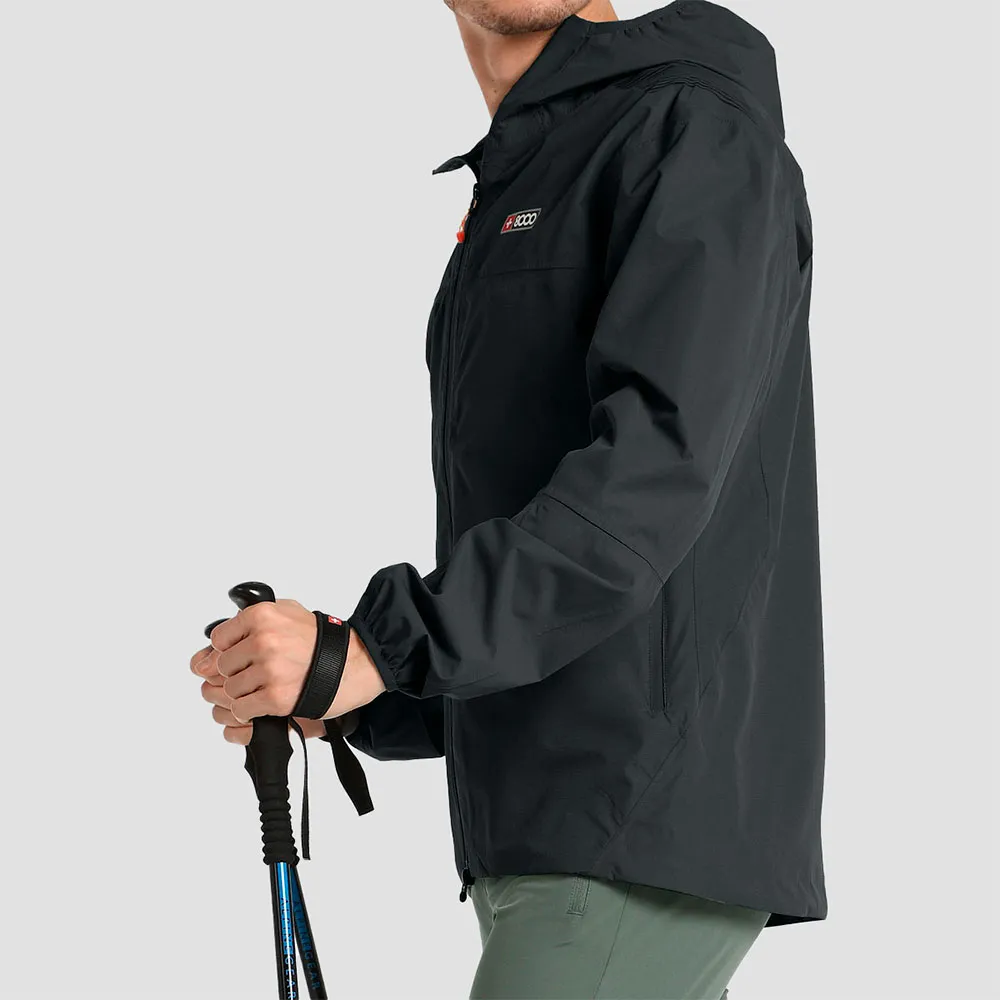 Водонепроницаемая и легкая куртка с капюшоном, с уровнем воздухопроницаемости 5000/5000 водяных столбов, проклеенными швами и водонепроницаемыми молниями.
