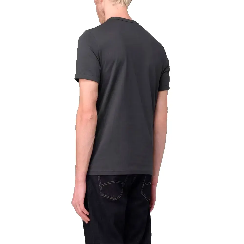 Футболка с круглым вырезом, а также вышитым на груди логотипом бренда контрастного цвета.