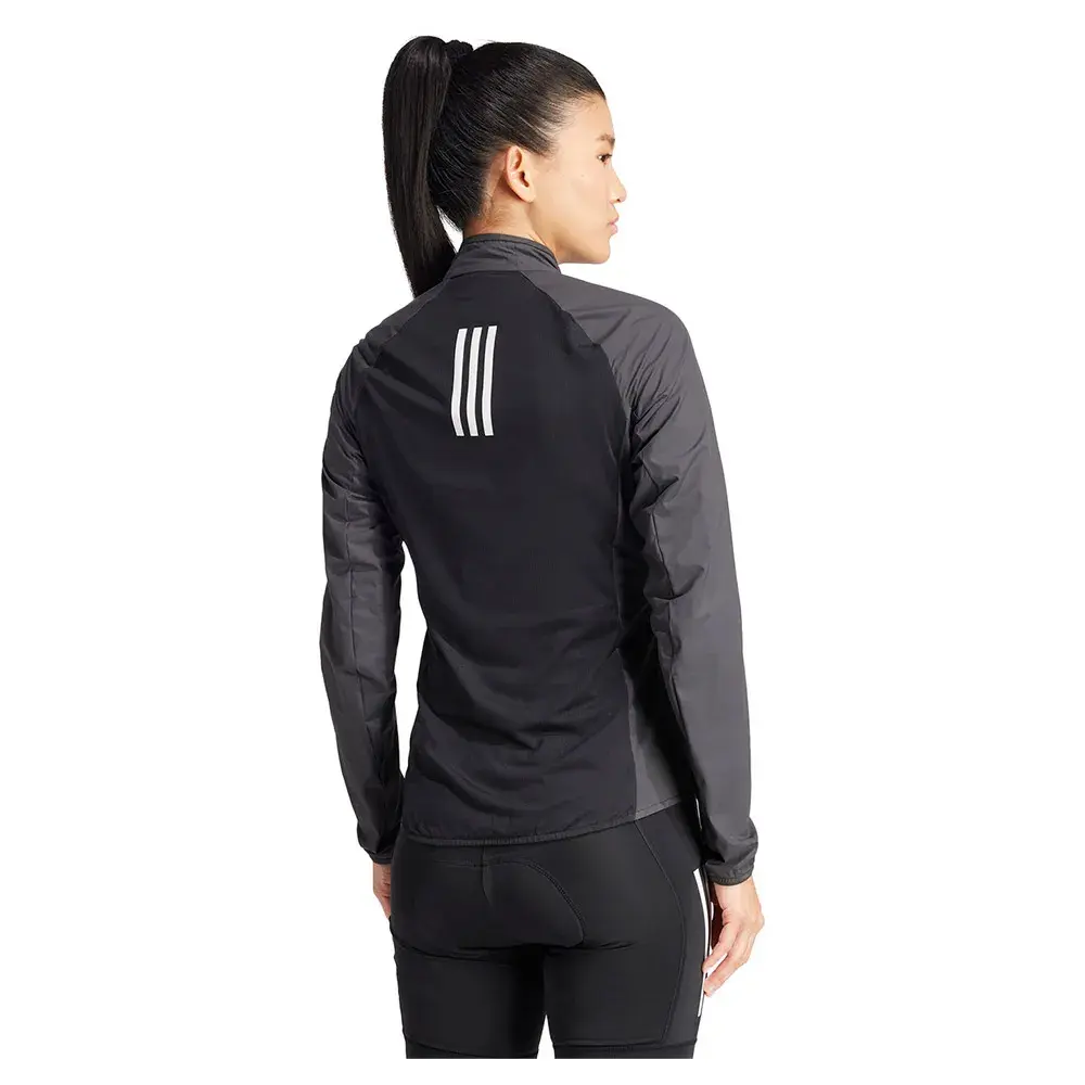Эта велокуртка adidas, созданная для прохладных утр и крутых спусков, обеспечивает дополнительный комфорт во время езды на велосипеде.