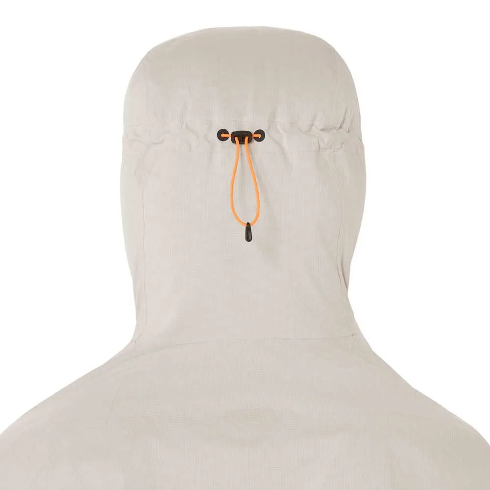 Высокий воротник и отверстия для больших пальцев защищают от непогоды, а затылочная регулировка капюшона позволяет регулировать посадку. Кроме того, нагрудный карман можно использовать для хранения необходимых для бега вещей и для упаковки куртки.