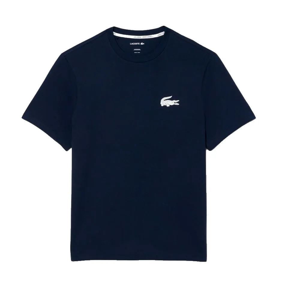 Футболка Lacoste с короткими рукавами, ребристым круглым вырезом и классическим кроем, удобная и подчеркивающая фигуру.