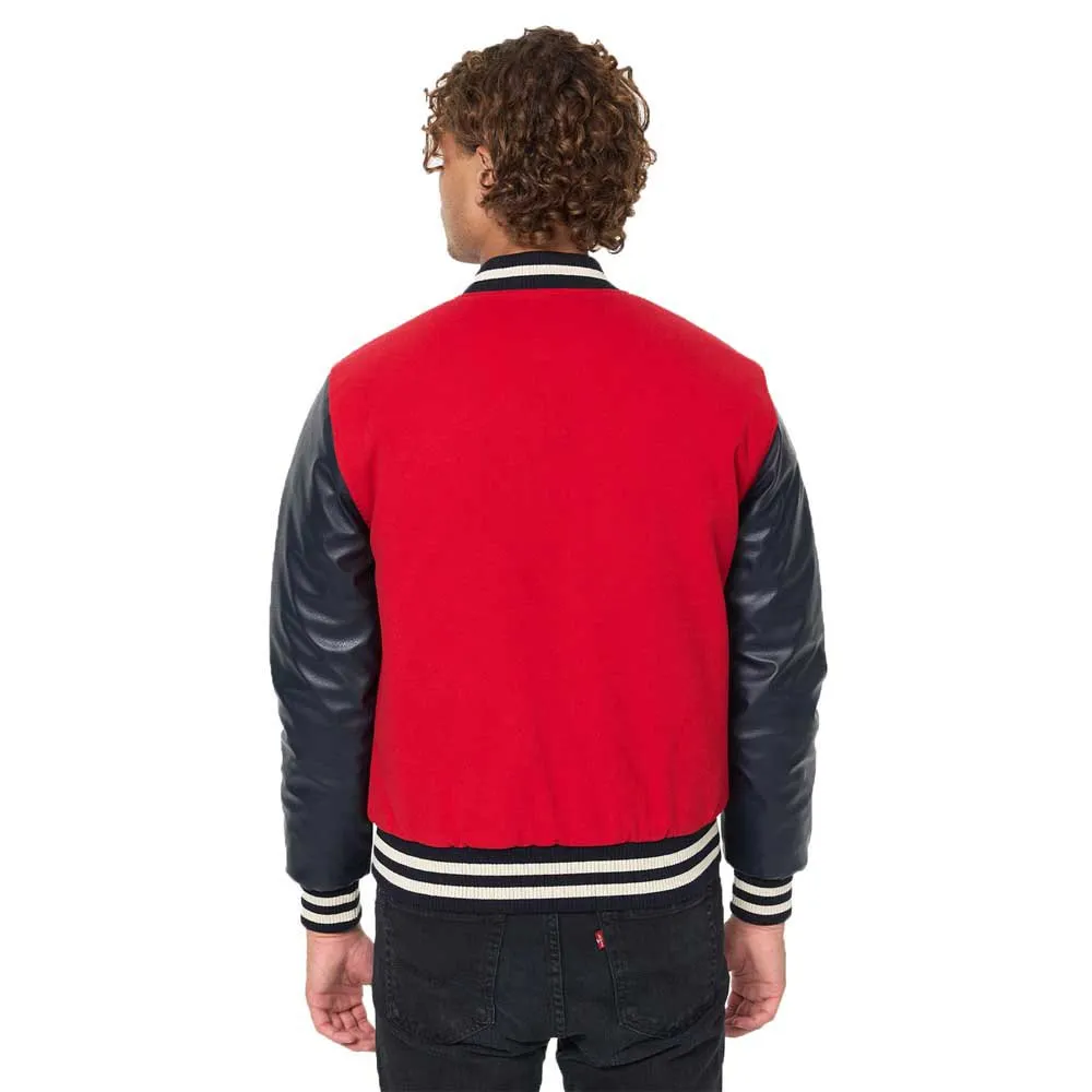Куртка BENLEE идеально подходит для повседневного образа благодаря сочетанию материалов и множеству деталей. Многочисленные аппликации спереди привлекают внимание, а застежка-молния с планкой на кнопках и карманы обеспечивают необходимый комфорт. В контрастных по цвету карманах можно хранить самые важные вещи, например, ключи или мобильный телефон. Полосатые манжеты дополняют типичный образ в стиле колледжа и идеально адаптируются к вашей фигуре.