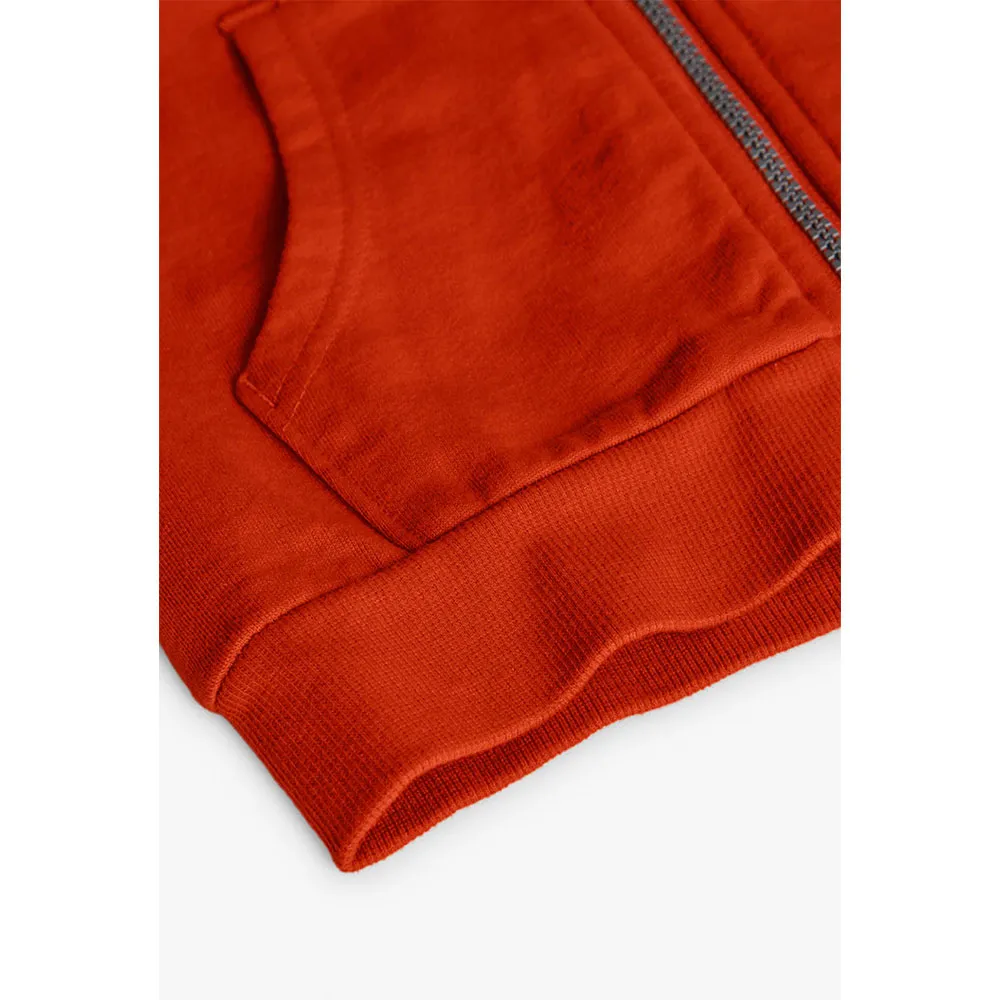 Плюшевая куртка для мальчиков оранжевого цвета, идеально подходящая для осени и зимы благодаря мягкой ткани, обеспечивающей комфорт и тепло.