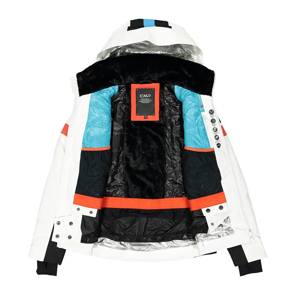 водонепроницаемая передняя молния, съемные снегозащитные гетры, рукава с отверстиями для больших пальцев, 2 боковых кармана и карман для ски-пасса на предплечье, съемный и регулируемый капюшон.