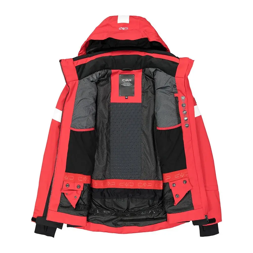внутренние снегозащитные гетры для защиты от холода и ветра, эргономичный пояс для максимального комфорта, внутренний карман с отверстием для наушников, еще 2 внутренних сетчатых кармана, 2 боковых кармана и карман для ски-пасса, регулируемые манжеты с отверстием для большого пальца, съемным капюшоном и резиновой молнией спереди.