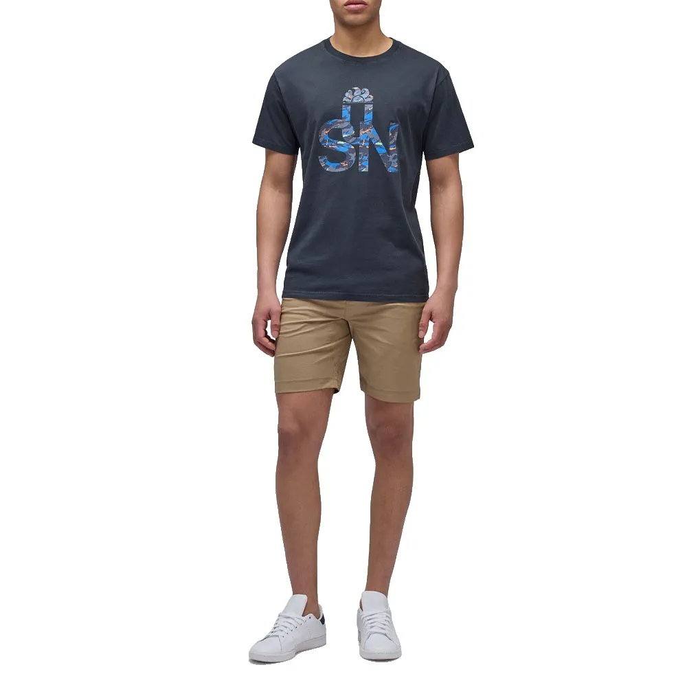Добавьте изюминку в свой образ с нашей мужской футболкой с коротким рукавом. Эта футболка из мягкого хлопка, украшенная камуфляжной надписью SUNDEK, идеально подходит для повседневных, но модных образов.