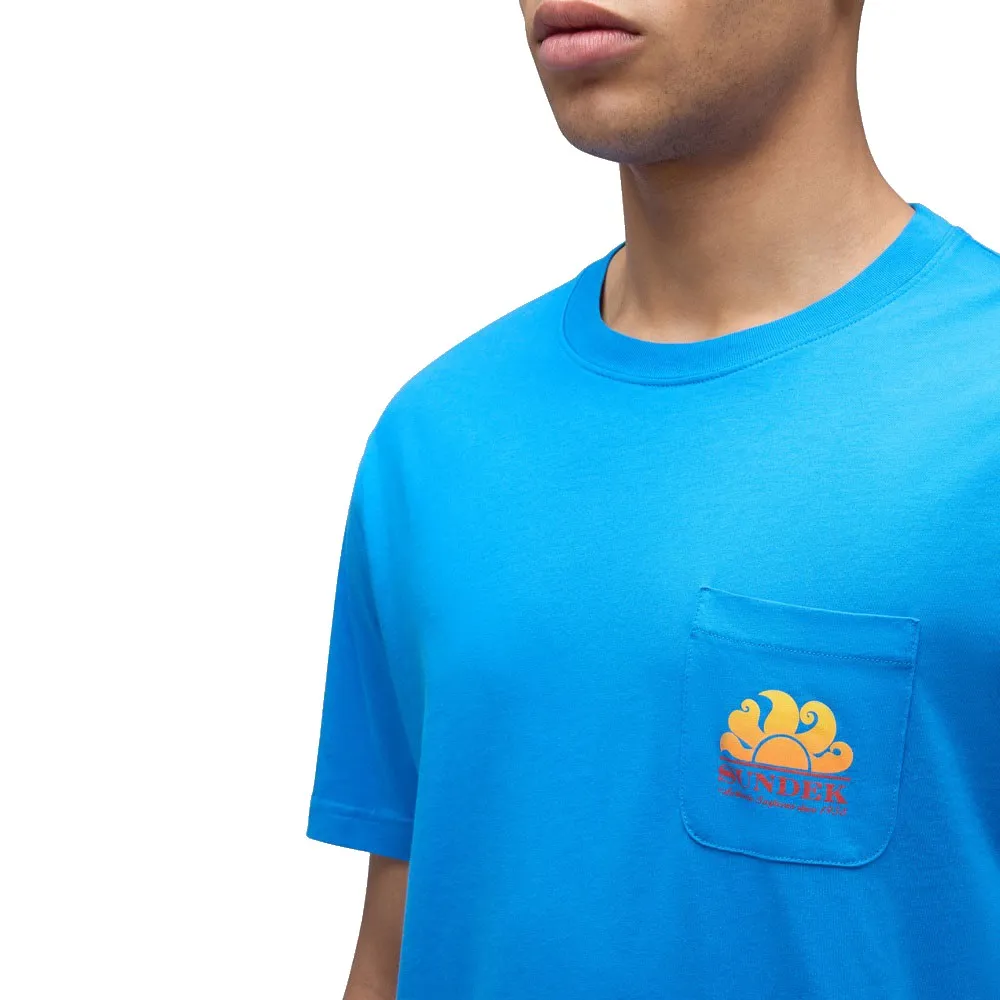Возьмите лето с собой, куда бы вы ни пошли, с этой футболкой с логотипом Sundek, напечатанным в градиентном стиле на кармане и спине: