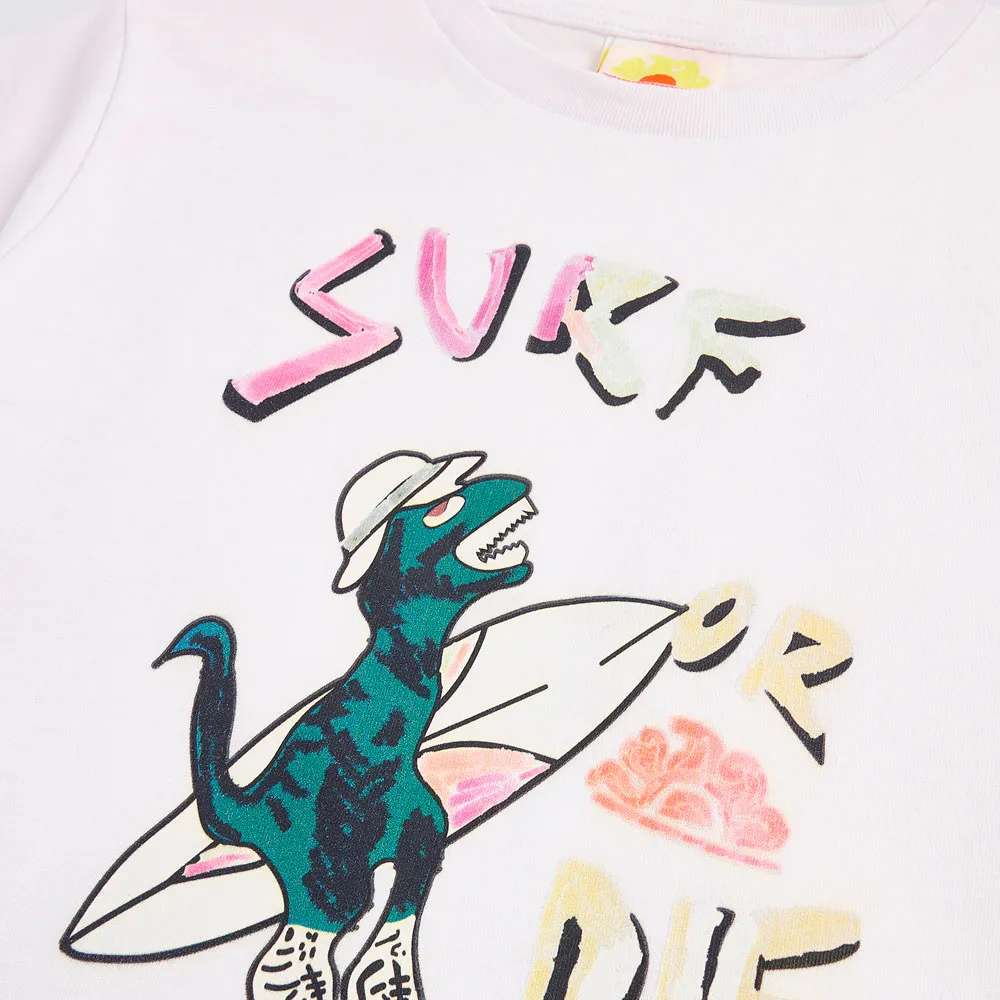 Добавьте немного веселья в наряд вашего ребенка с этой футболкой с короткими рукавами и архивным принтом.
