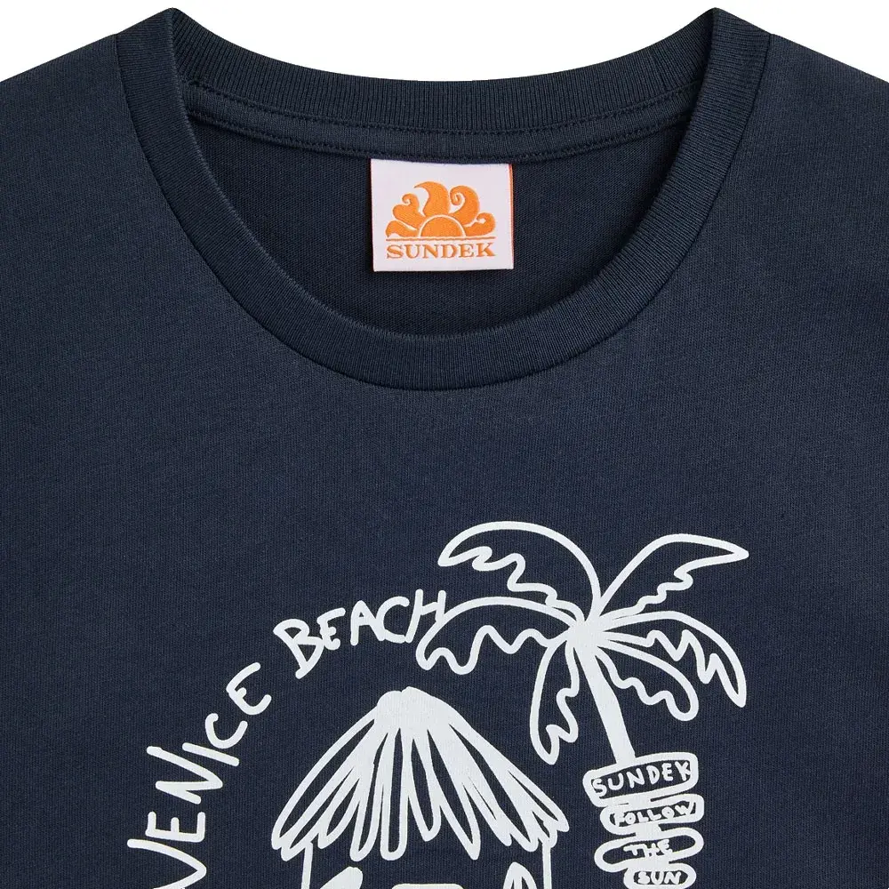 Добавьте немного веселья в наряд вашего ребенка с этой футболкой с короткими рукавами и принтом «Венецианский пляж».