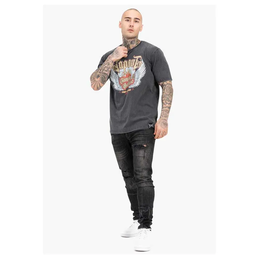 Футболка со специальной стиркой и характерным логотипом на груди. Пришитая этикетка на подгибе завершает дизайн. Благодаря особому эффекту окрашивания, изделие получается индивидуальным. В связи с этим, соответствующее изделие может незначительно отличаться от изображения на фотографии.
