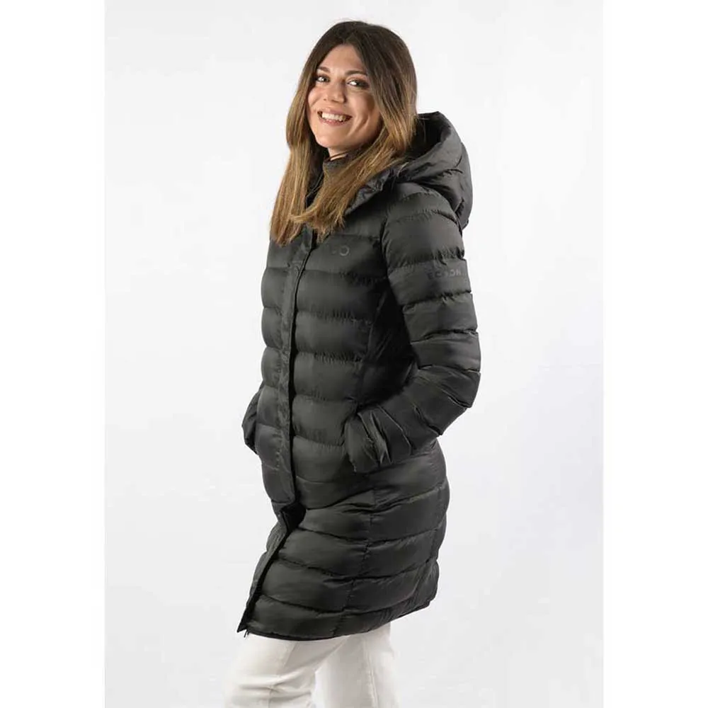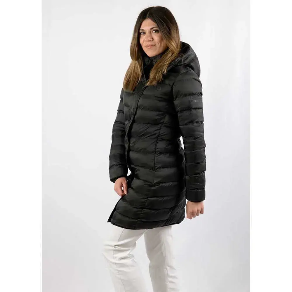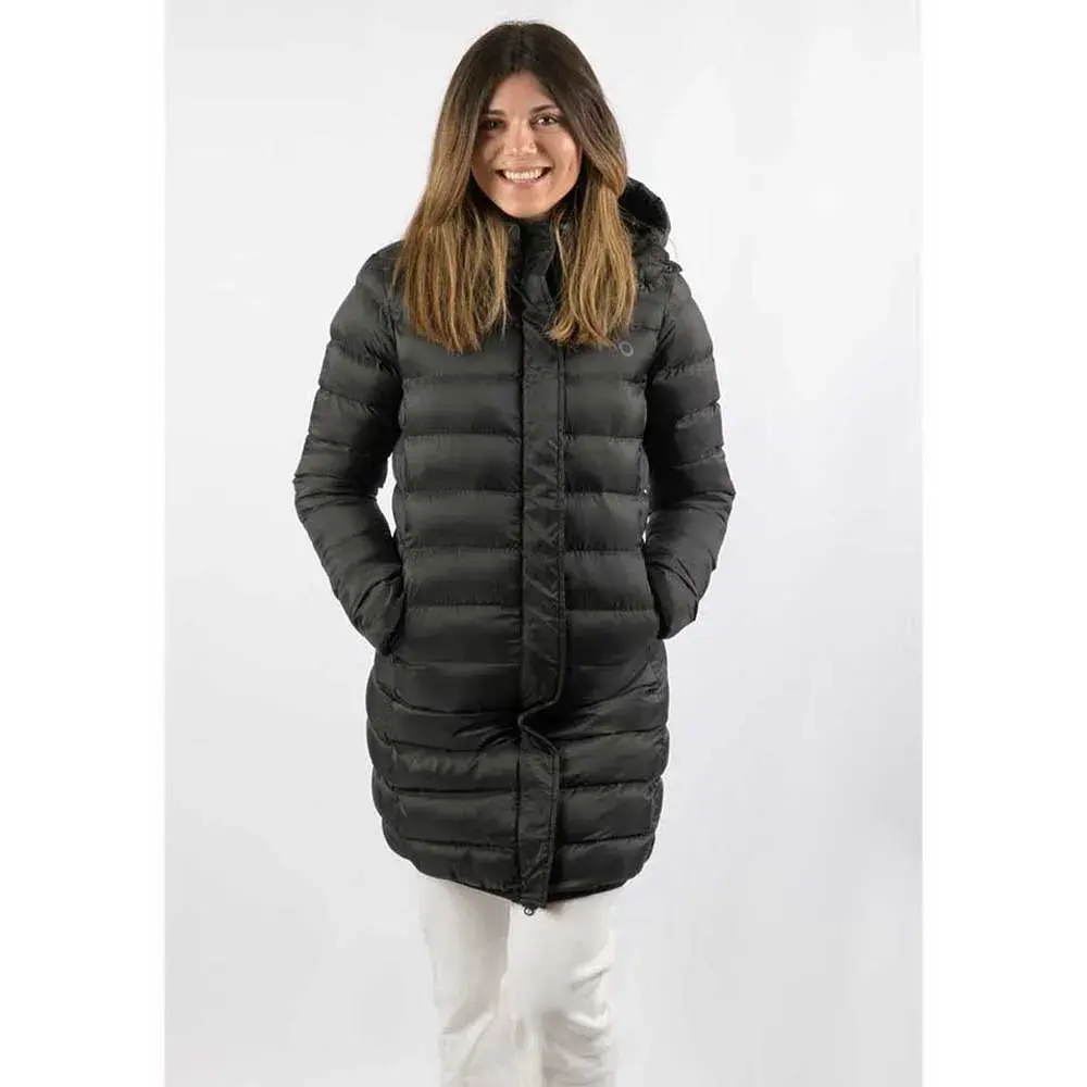 Munich Long — теплая женская куртка, изготовленная из 100% МОНОТКАНИ с использованием ультратонких волокон, переработанных и на 100% подлежащих переработке.