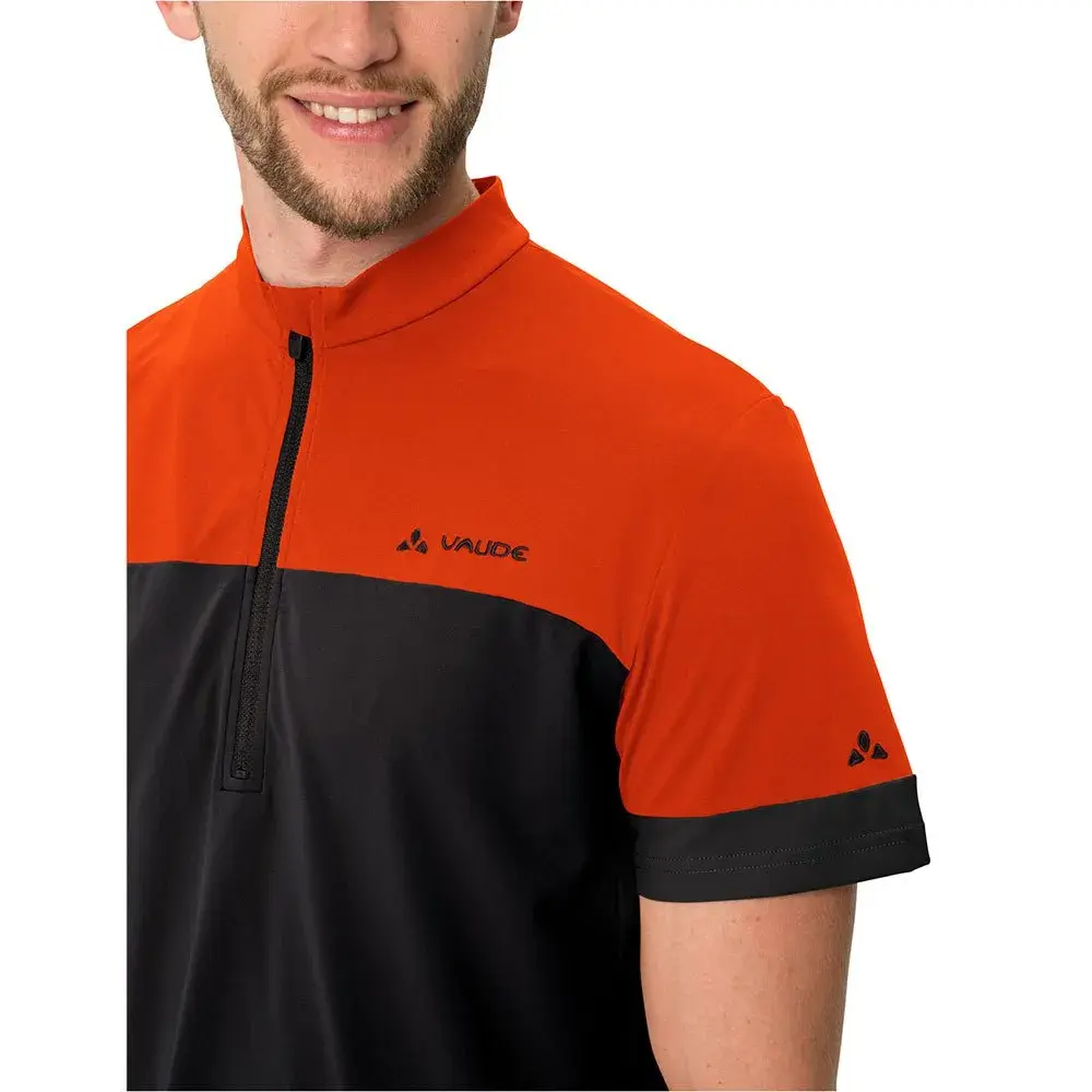 Эта рубашка для езды на велосипеде отличается спортивным стилем, небольшим воротником-стойкой, короткой молнией спереди и динамичным дизайном с цветными блоками.
