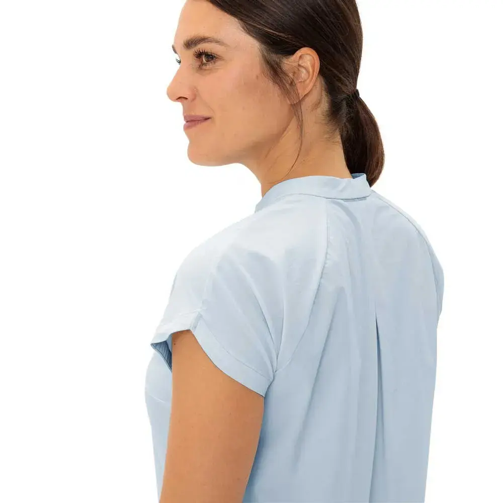 Красивый воротник-стойка, короткая планка с пуговицами и продуманно короткие рукава создают визуальные акценты.