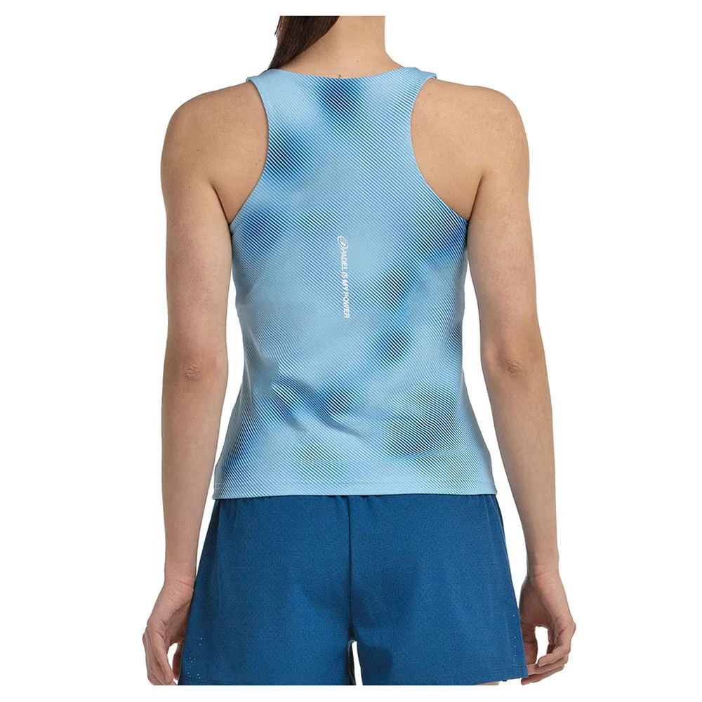 Футболка облегающего кроя с бретельками, V-образным вырезом и спиной-борцовкой, с сублимационной печатью. Изготовлена из эластичного полиэстерового трикотажа. От бренда Delfi Brea. Применена технология Drynamic с использованием микроволокон для снижения влажности и потоотделения.