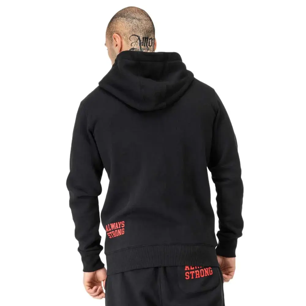 Свитшот с капюшоном и крупным принтом логотипа на груди, а также карманом-кенгуру. Слева внизу на спине расположен небольшой принт с надписью бренда «Always Strong».