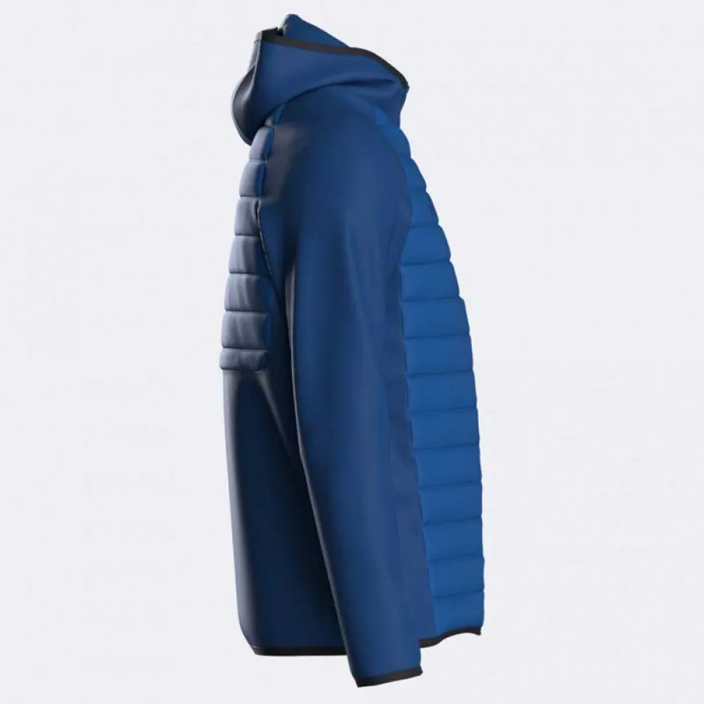 Королевский синий цвет добавляет куртке яркий штрих, делая ее визуально привлекательной для детей. Дизайн включает в себя контрастные белые панели и брендинг JOMA на груди, что придает ей спортивный вид, который нравится детям.