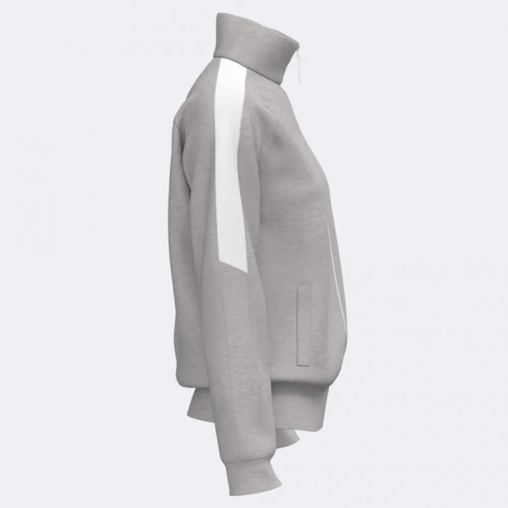 Высокий ворот, застёжка-молния с бегунком и эластичный подол.