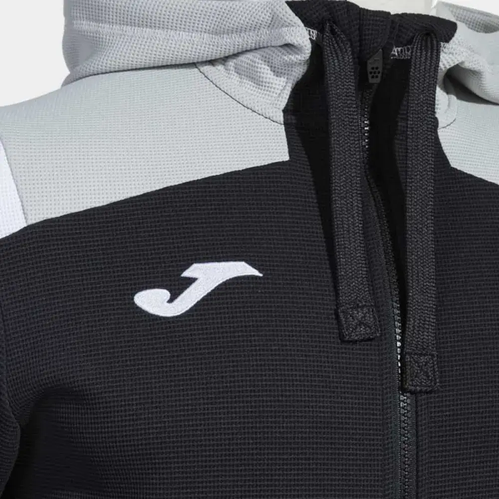 Толстовка на молнии. Очень удобная, практичная и эластичная куртка для демисезона, подходящая для любых спортивных тренировок. Оснащена цельнолитой молнией и защитой подбородка, предотвращающей натирание. Также имеет капюшон и ребристые манжеты и подол для более комфортной посадки. Два передних кармана на молнии для безопасного хранения мелких предметов. Изготовлена из комфортной, дышащей и эластичной ткани, обеспечивающей свободу движений спортсмена во время использования. Дизайн с контрастными цветовыми элементами. Вышитый логотип Joma.