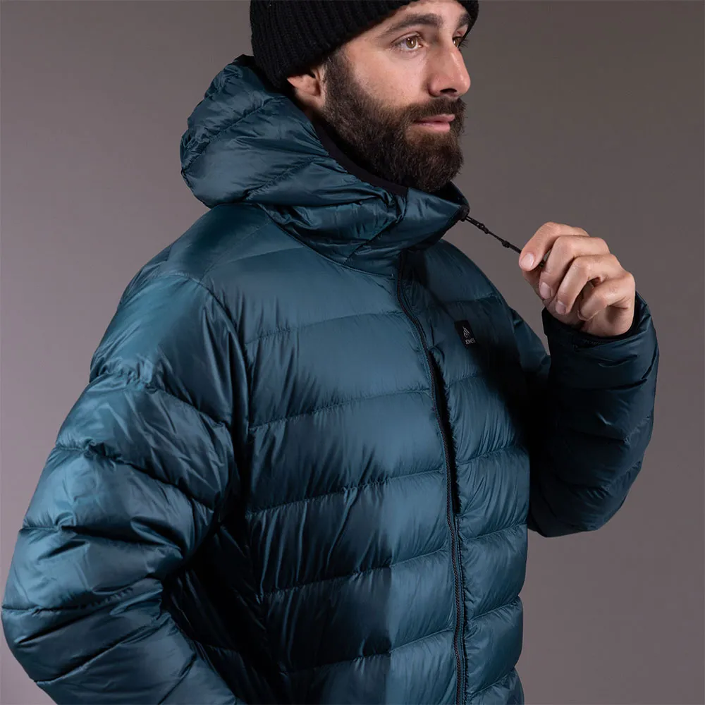 Пуховая куртка с капюшоном JONES Re-Up Down Recycled Hoodie — идеальный выбор для экологически сознательных мужчин, которые ценят как стиль, так и функциональность.