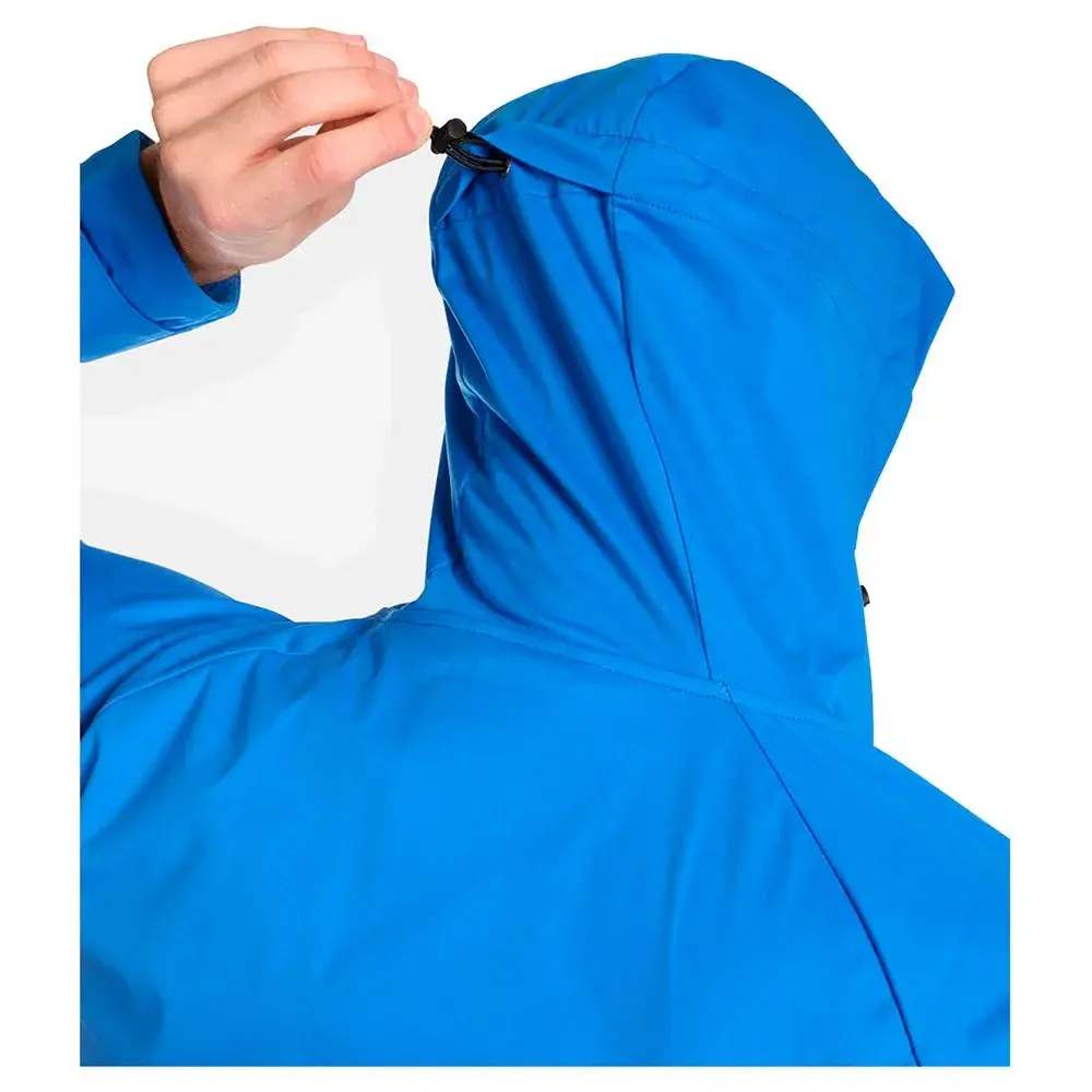 Капюшон с высоким воротником и нижний край куртки затягиваются эластичным шнуром.