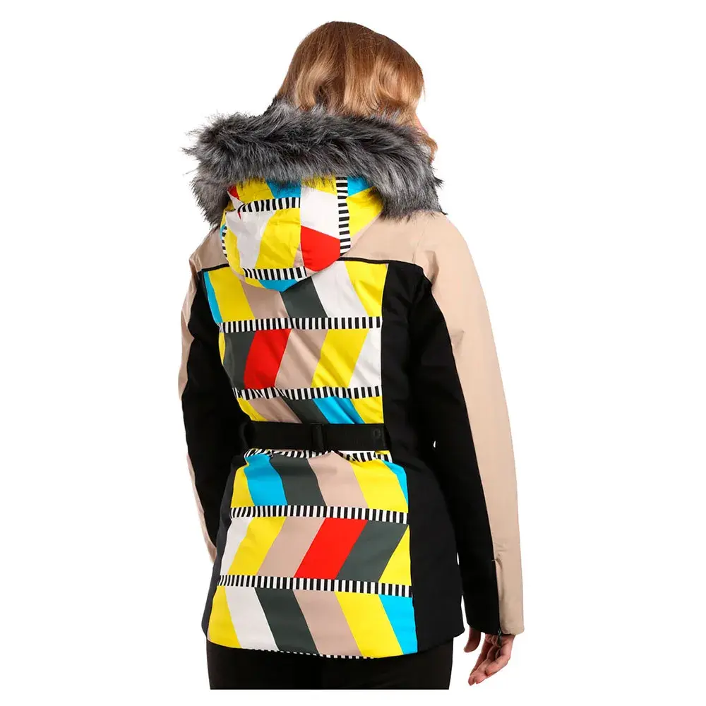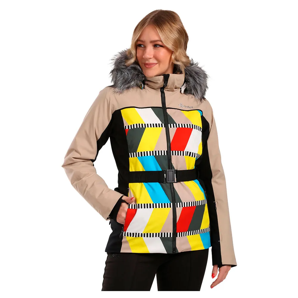 Куртка имеет современный принт по всей поверхности, который можно комбинировать с нашими горнолыжными брюками TORIEN-W из софтшелла.