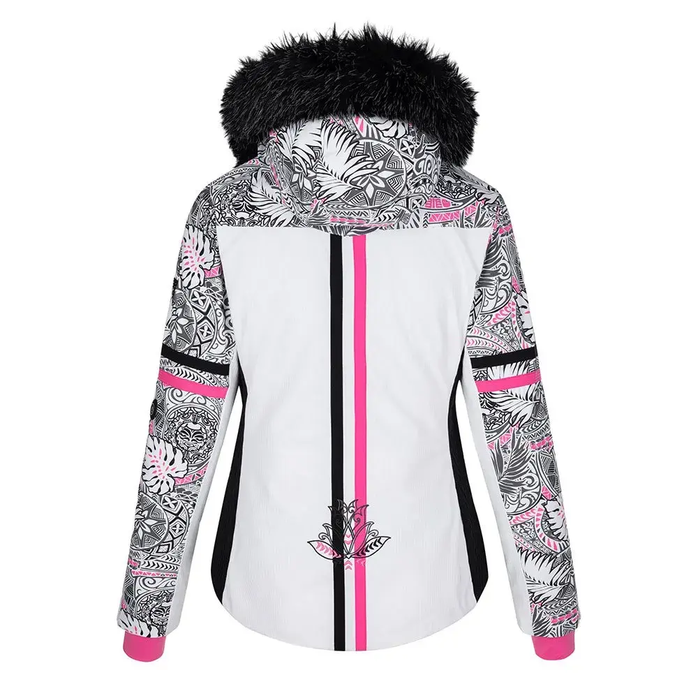 Женская горнолыжная куртка Kilpi LENA-W имеет роскошный принтованный дизайн по всей поверхности и внутреннюю интегрированную систему подогрева, что делает эту куртку исключительной.