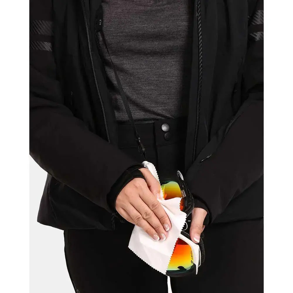 Куртка оснащена несколькими карманами с ламинированными молниями, включая внутренний карман для очков с салфеткой для протирки и карман для ски-пасса.