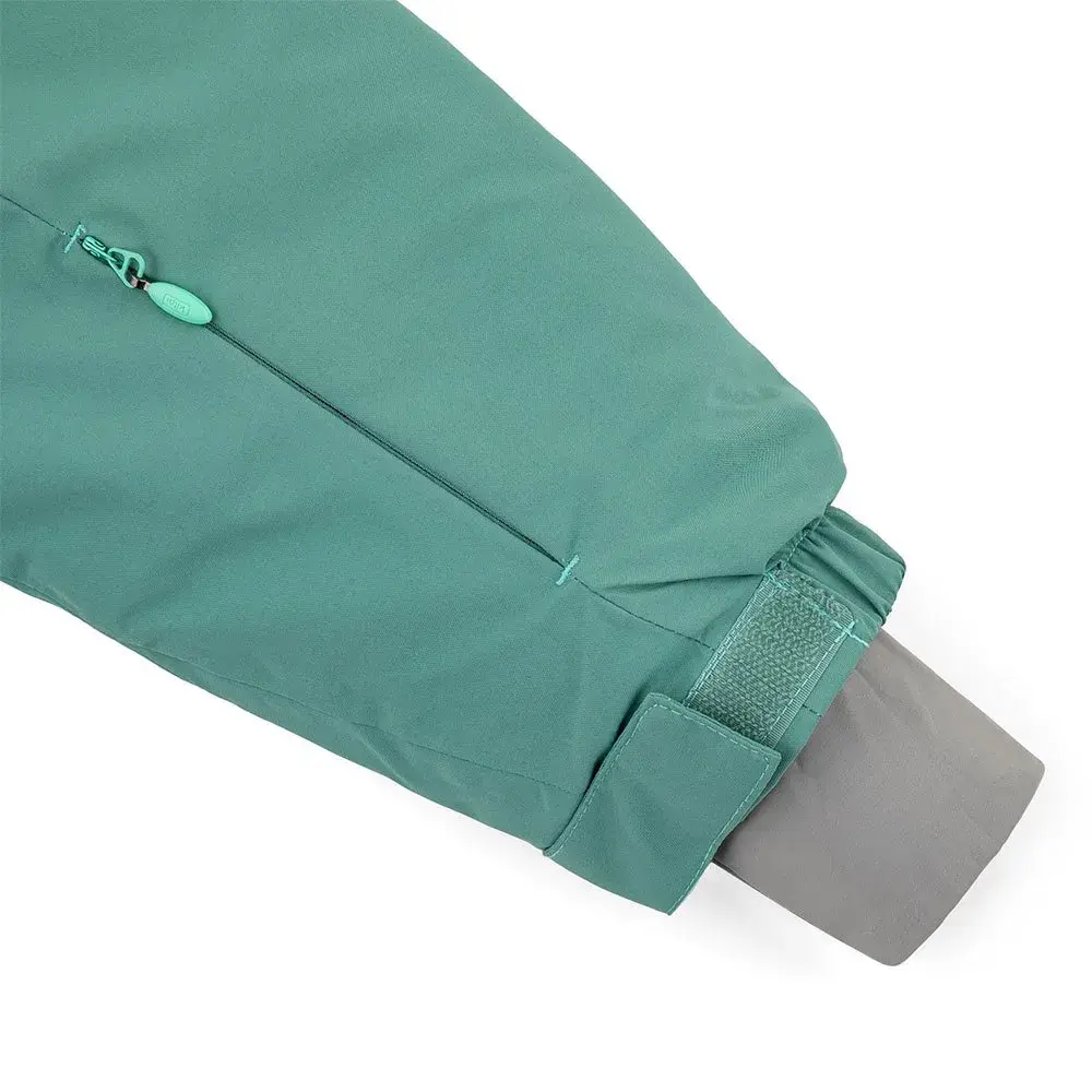 Куртка имеет два основных кармана, карман на рукаве для ски-пасса и съемный капюшон со стильной отделкой из синтетического меха.