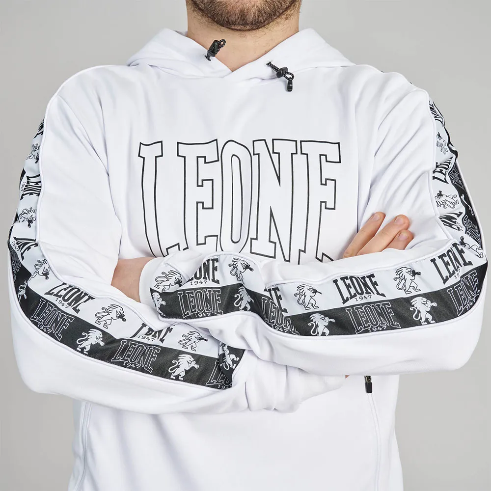 Культовая толстовка LEONE1947 Iconic белого цвета — классический и стильный предмет мужской одежды, идеально подходящий для повседневного ношения. Изготовленная из высококачественных материалов, эта толстовка удобна и прочна, что делает её отличным дополнением к любому гардеробу. Культовый дизайн с заметным логотипом LEONE1947 спереди добавляет изделию нотку стиля и изысканности. Эта толстовка идеально подходит для прохладных дней или отдыха дома, она станет незаменимой вещью для любого современного мужчины.