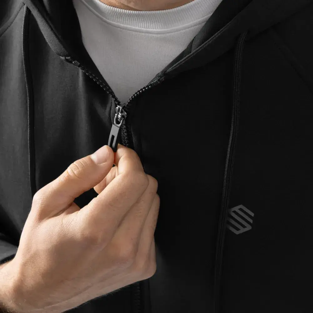 Мужская тренировочная толстовка с капюшоном на молнии по всей длине.