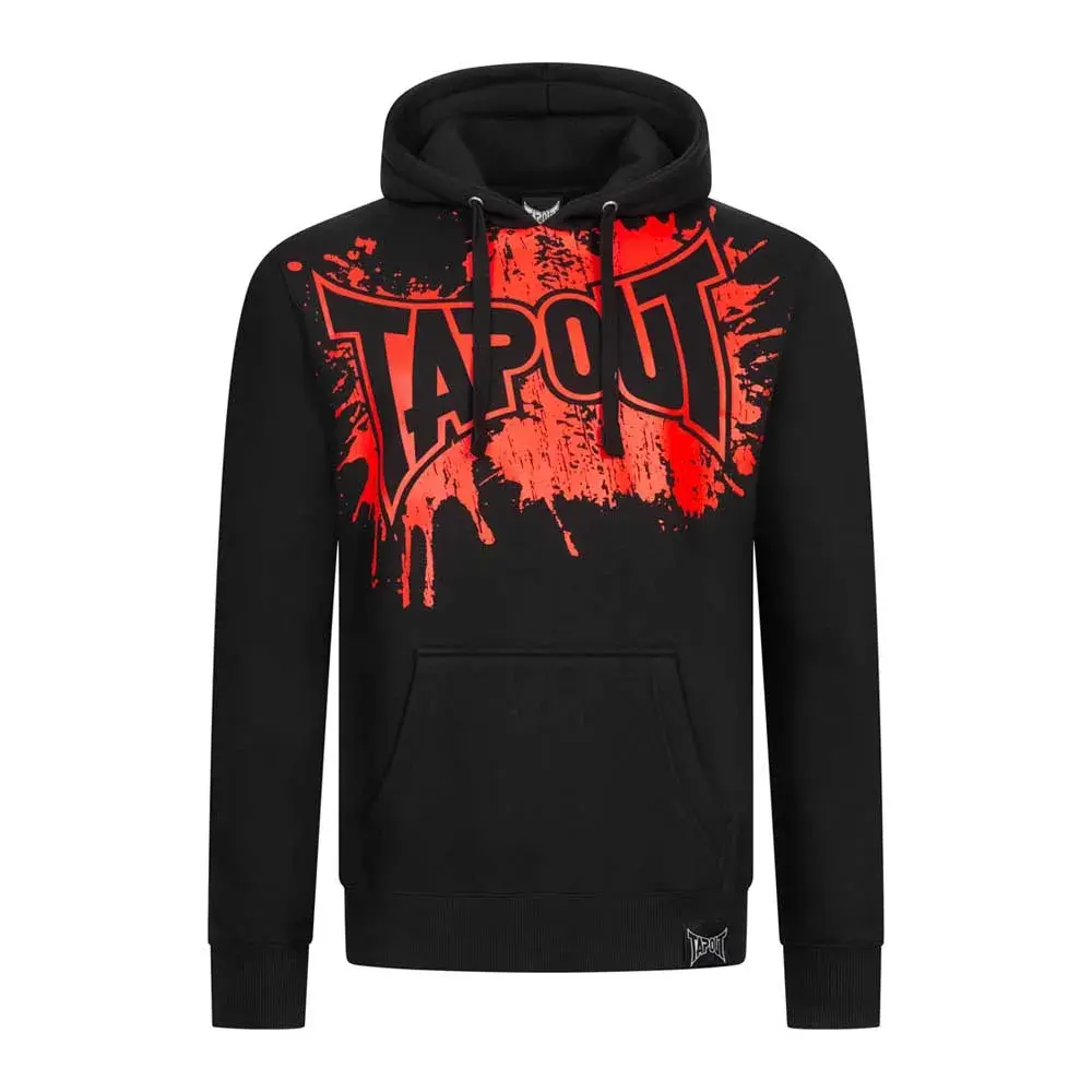 Мужская толстовка с капюшоном, классический крой. Толстовка с крупным логотипом и карманом-кенгуру спереди. Небольшая этикетка Tapout на левом подгибе спереди.