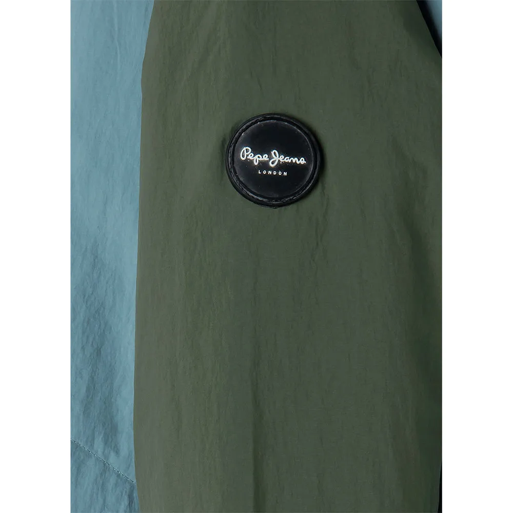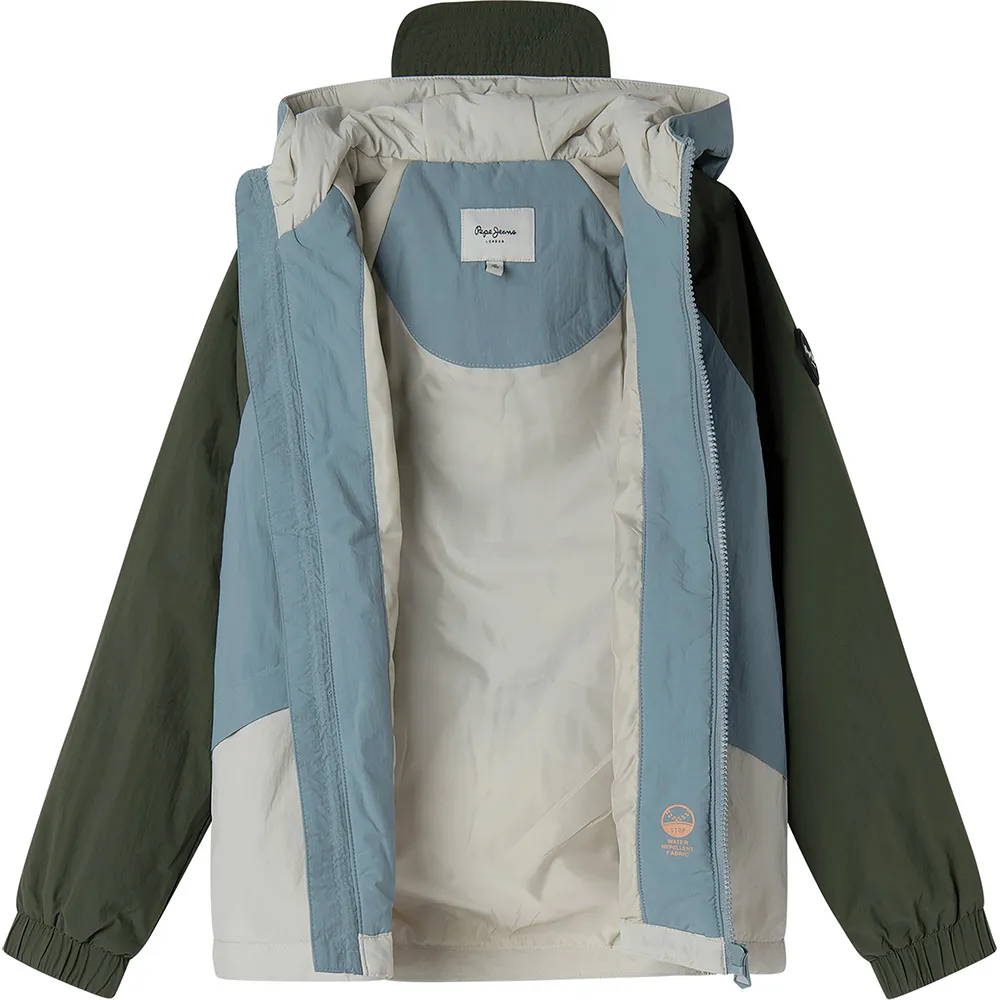 Куртка с цветными блоками из водоотталкивающей ткани с капюшоном и козырьком, с легкой подкладкой.