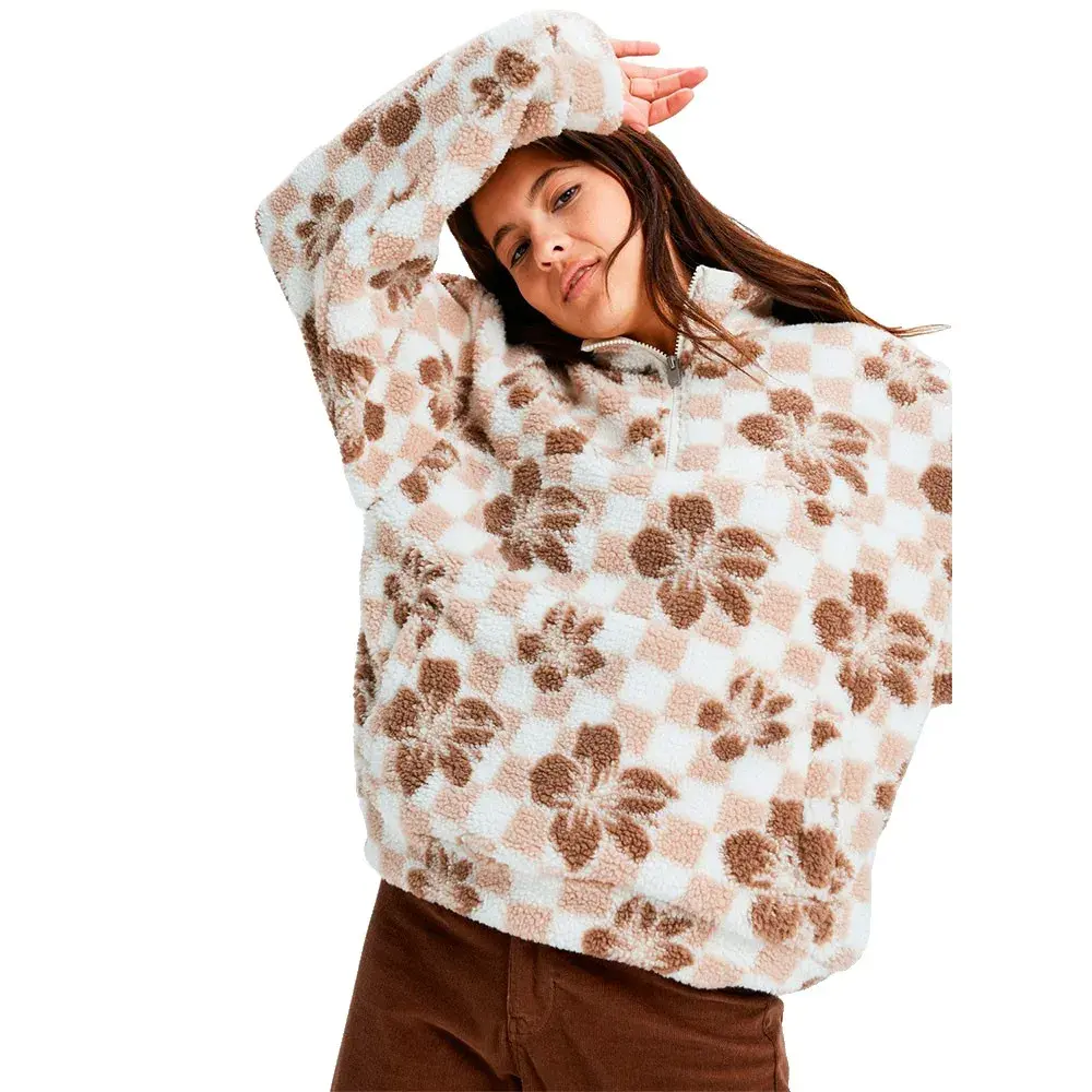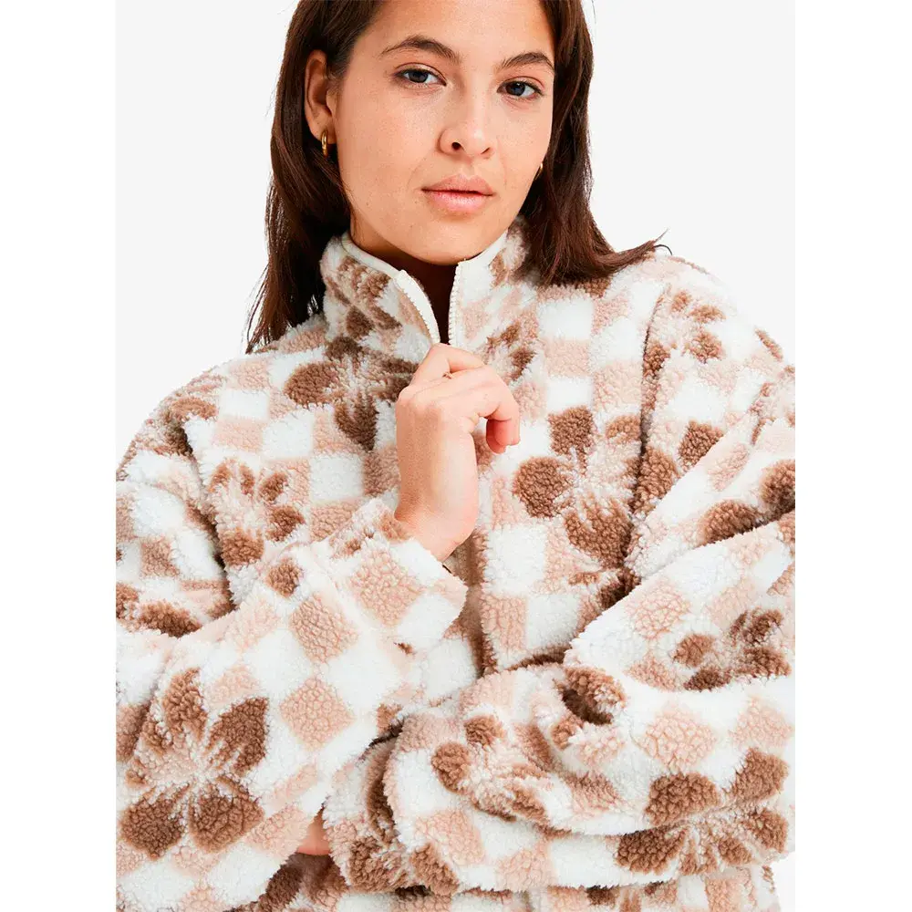 Печатный плотный шерпа - 100% переработанный полиэстер (385 г/м²), Крой: свободный, Горловина: высокий воротник, Карманы: боковые карманы, Нейлоновая молния, замшевая нашивка Roxy.