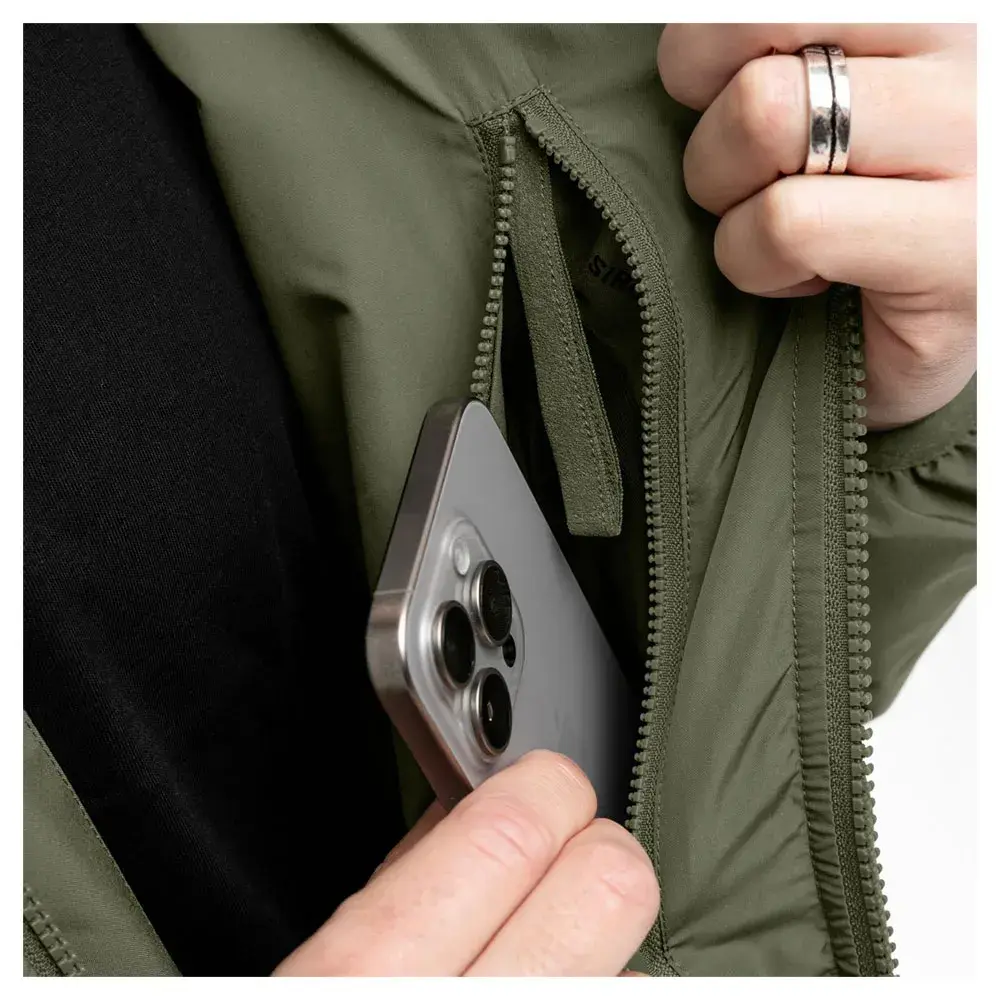 Она имеет капюшон и высокий воротник, а также два боковых кармана с молниями SBS и шнурками-застежками-молниями, а также эластичные края на манжетах, внизу и капюшоне. Куртку можно легко сложить в карман для самостоятельной укладки, чтобы вы могли брать ее с собой куда угодно.