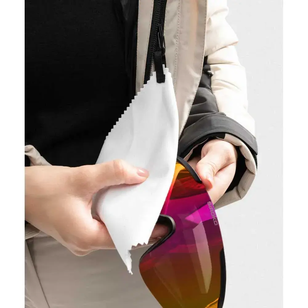 - Два внутренних кармана: один сетчатый карман сбоку и один карман на молнии на груди с салфеткой из микрофибры для протирки очков