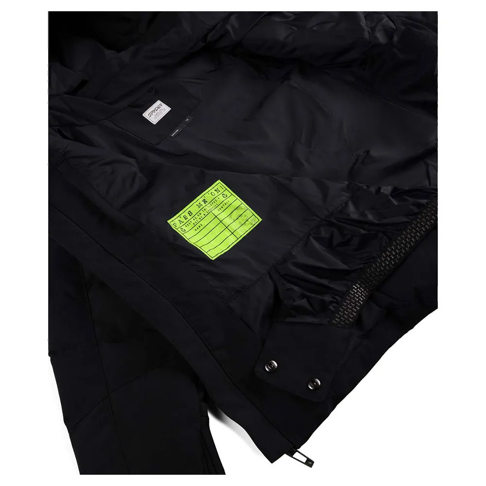 Фиксированный капюшон, совместимый со шлемом, с внутренним гетром.
